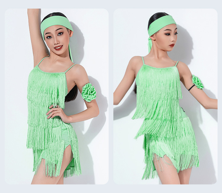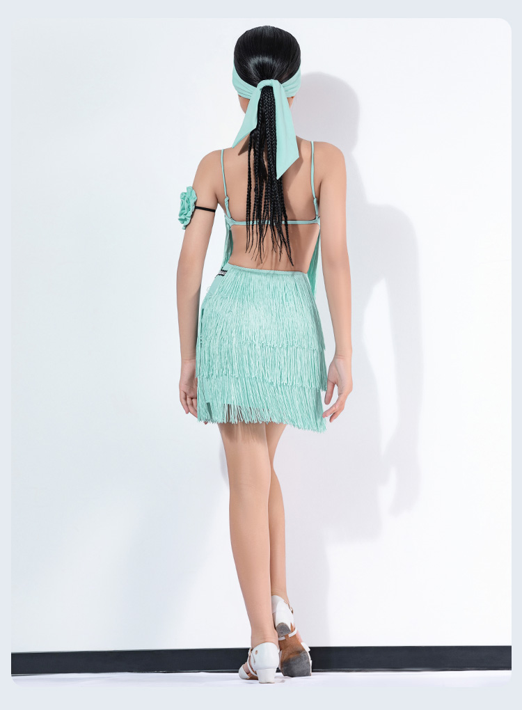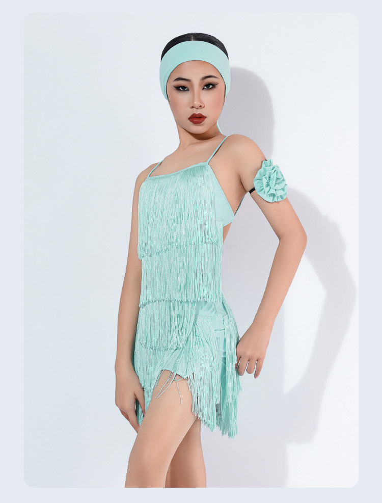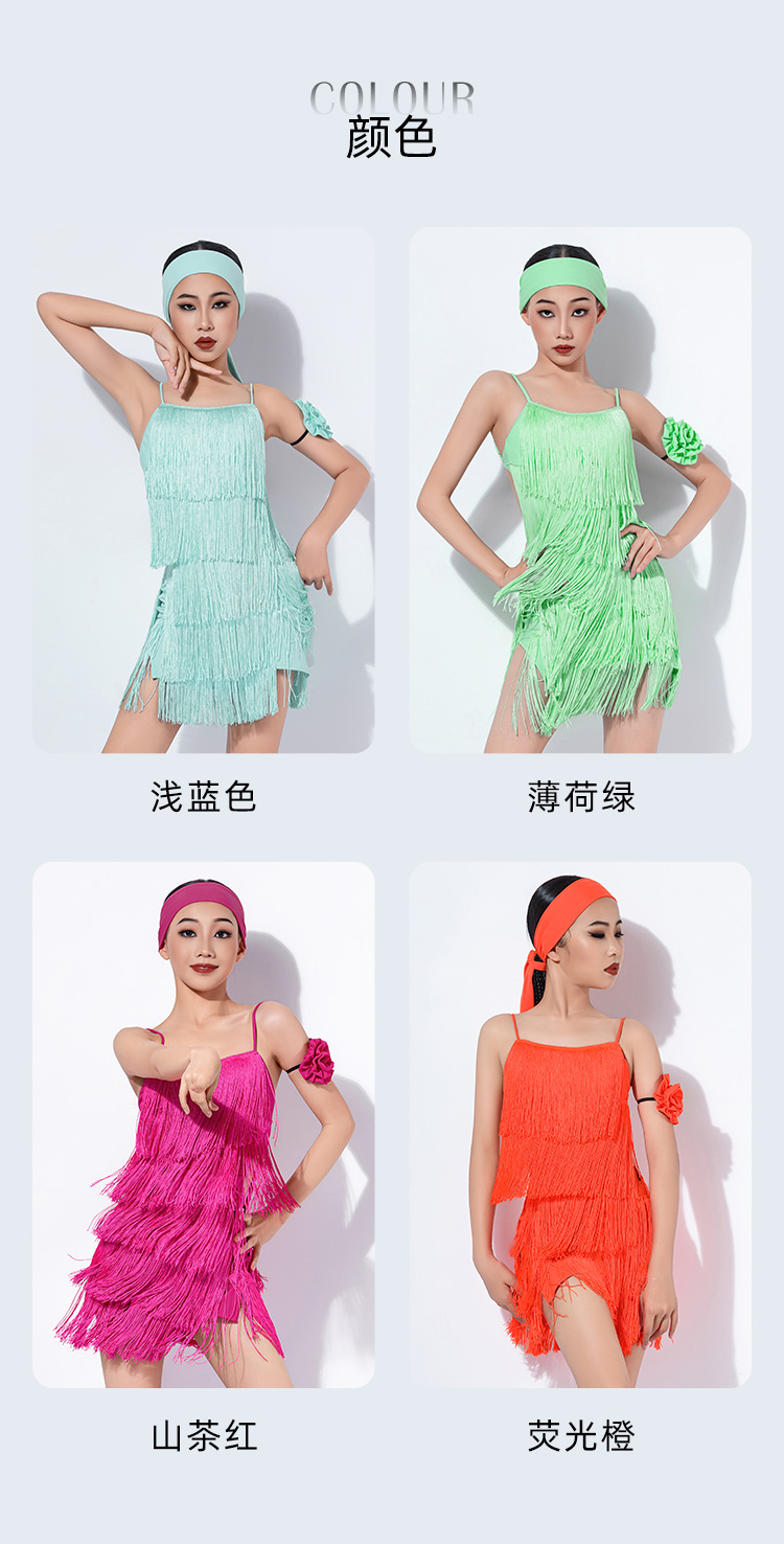 皇朝拉丁新款吊带露背拉丁舞连衣裙练功服流苏舞裙舞蹈服装 H9364