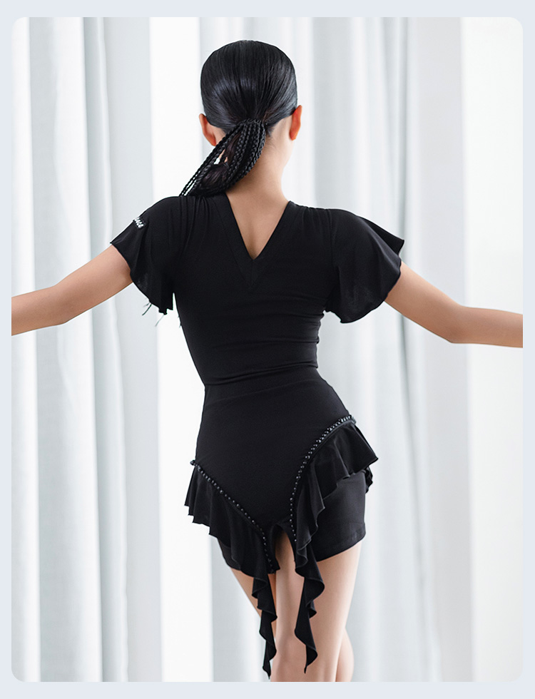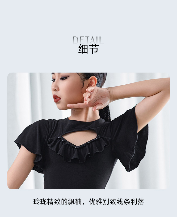 皇朝拉丁女童练功服拉丁舞服新款短袖黑色分体套装 H6327+H7258