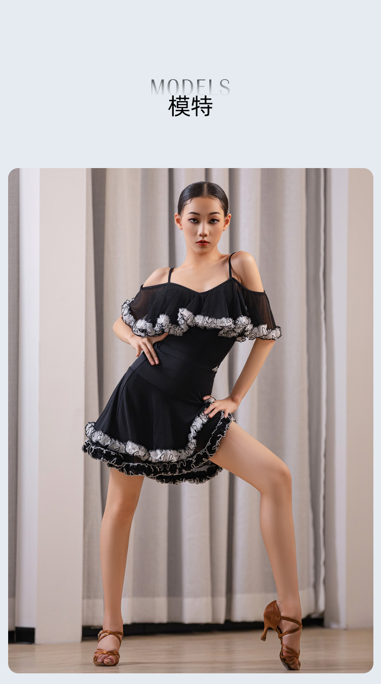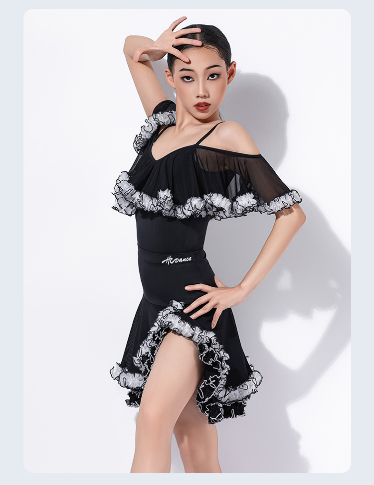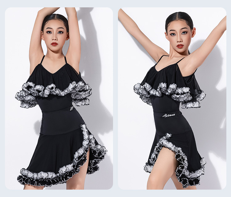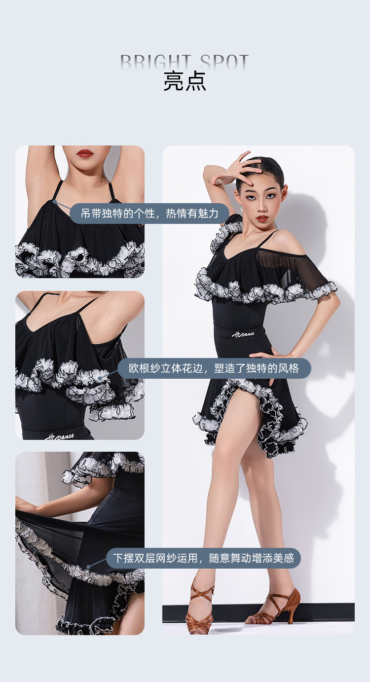 皇朝拉丁拉丁舞裙新款练习服女儿童高级感吊带演出服H6392+H7307
