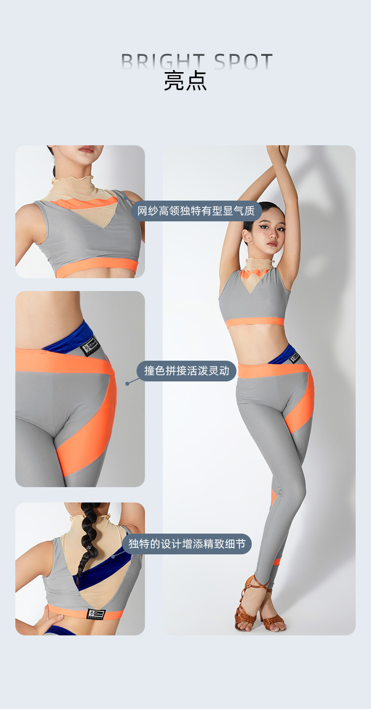 皇朝舞蹈拉丁女童多色拼接新款套装H6271+H7222