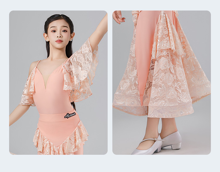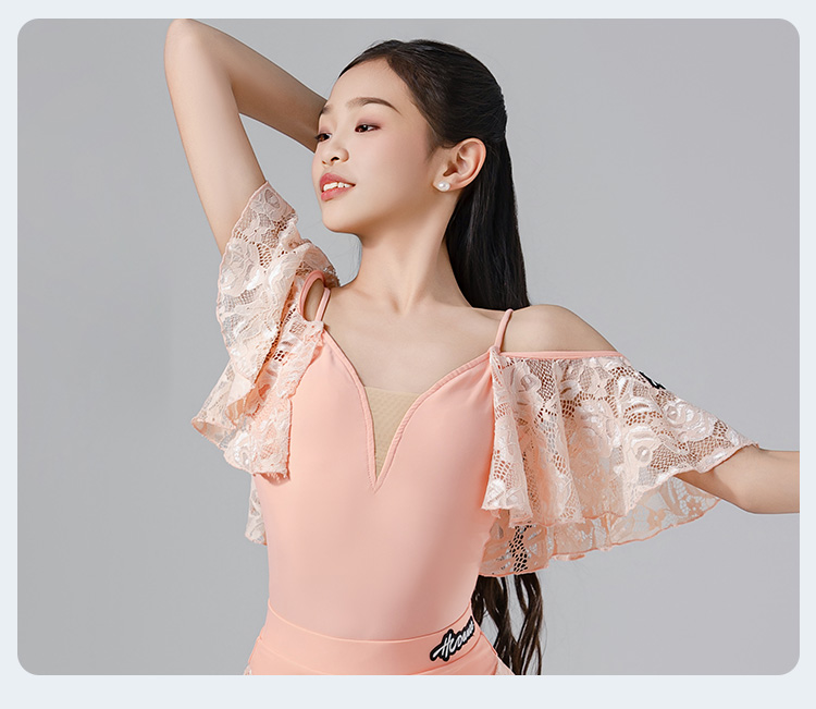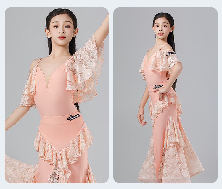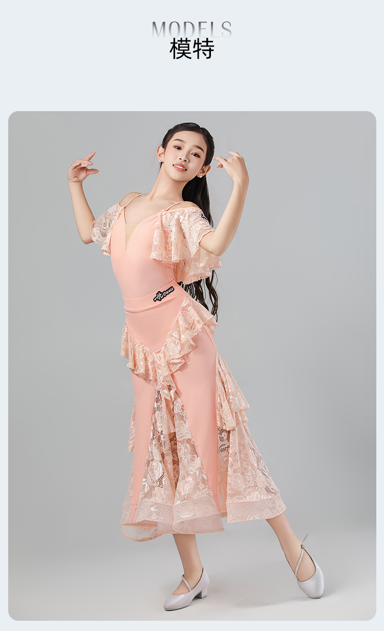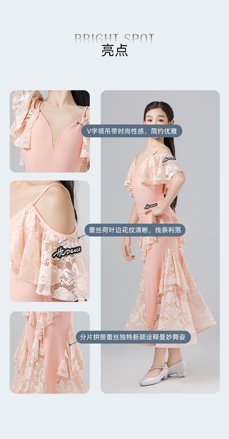 皇朝拉丁2024年3月女童摩登V领肩带拼接蕾丝套装H6375+H7295