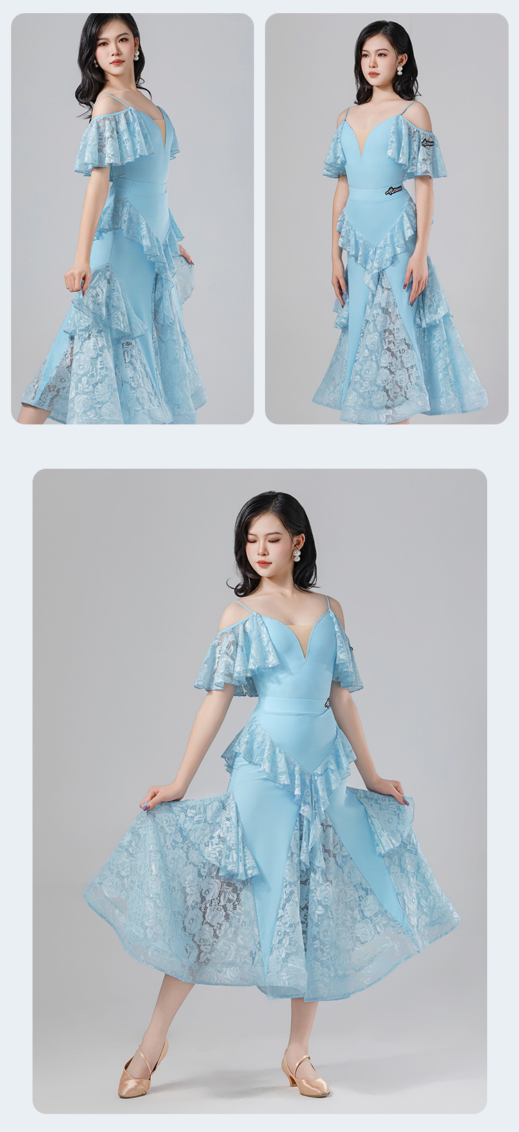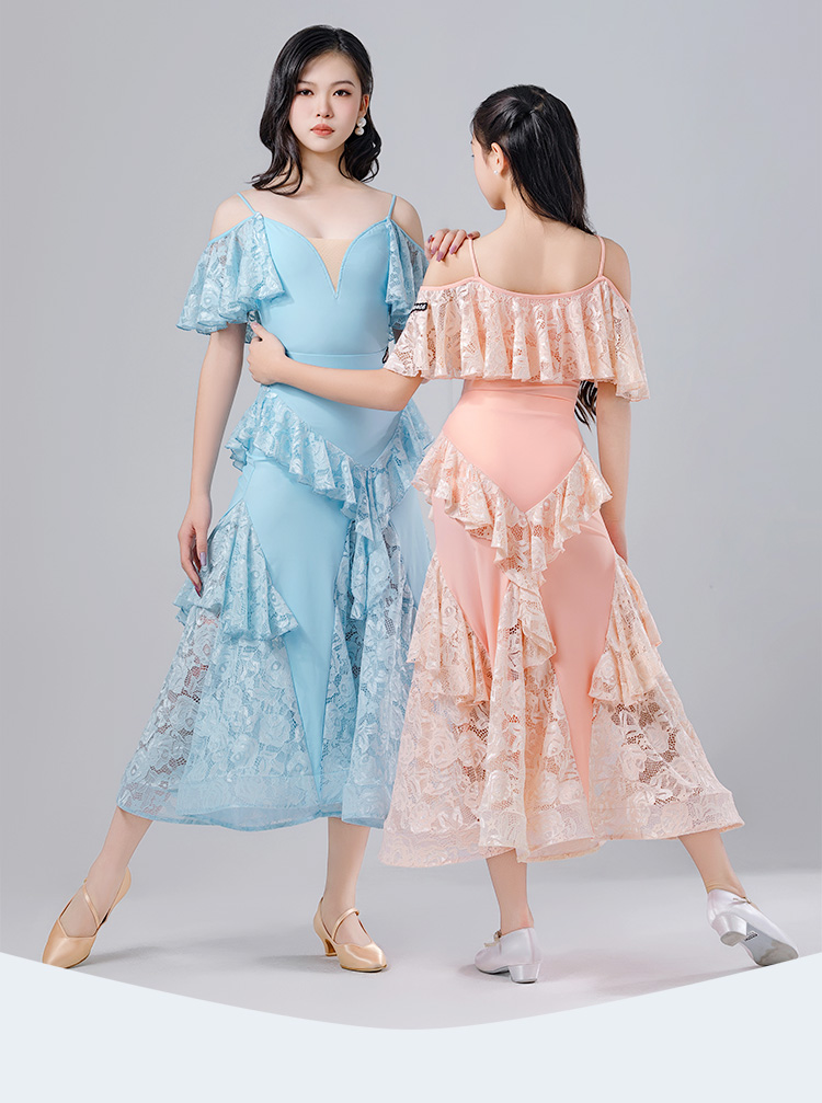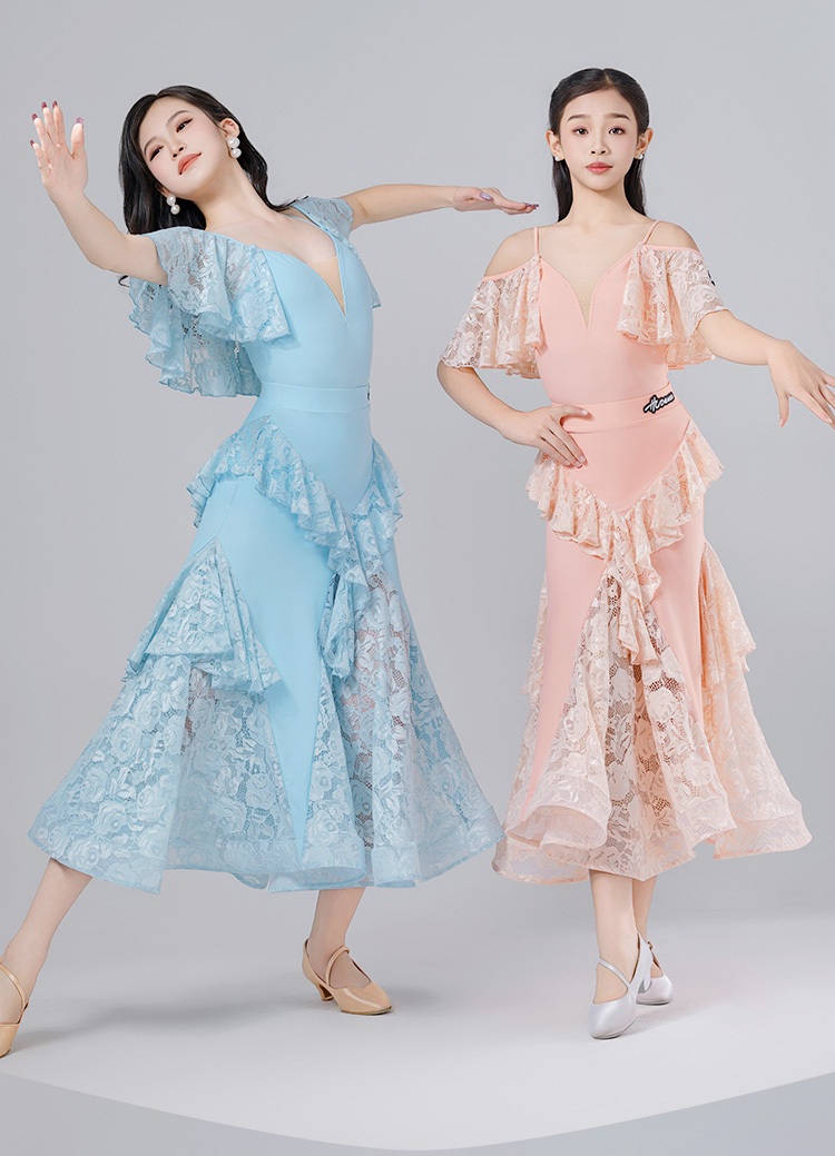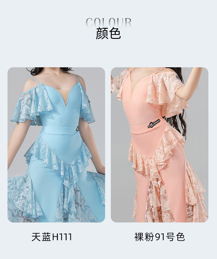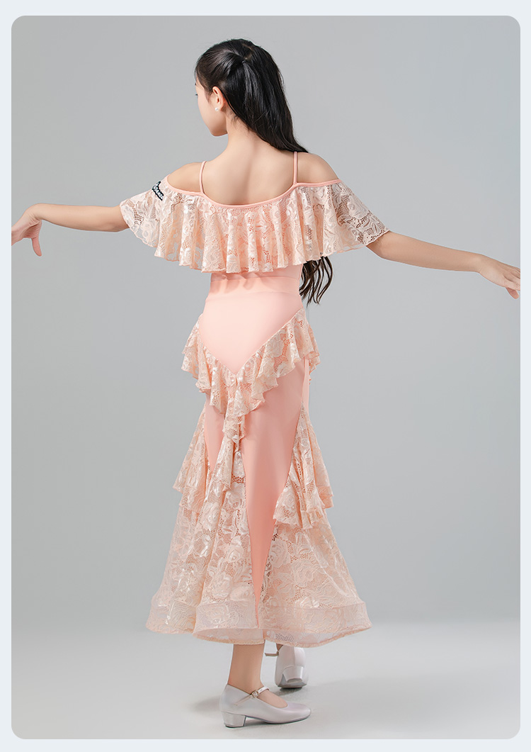 皇朝拉丁2024年3月女童摩登V领肩带拼接蕾丝套装H6375+H7295
