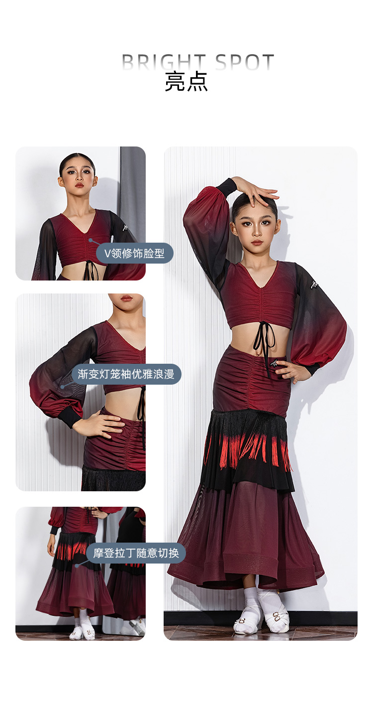 皇朝拉丁女童练功服拉丁舞服新款分体套装H6430+H7367