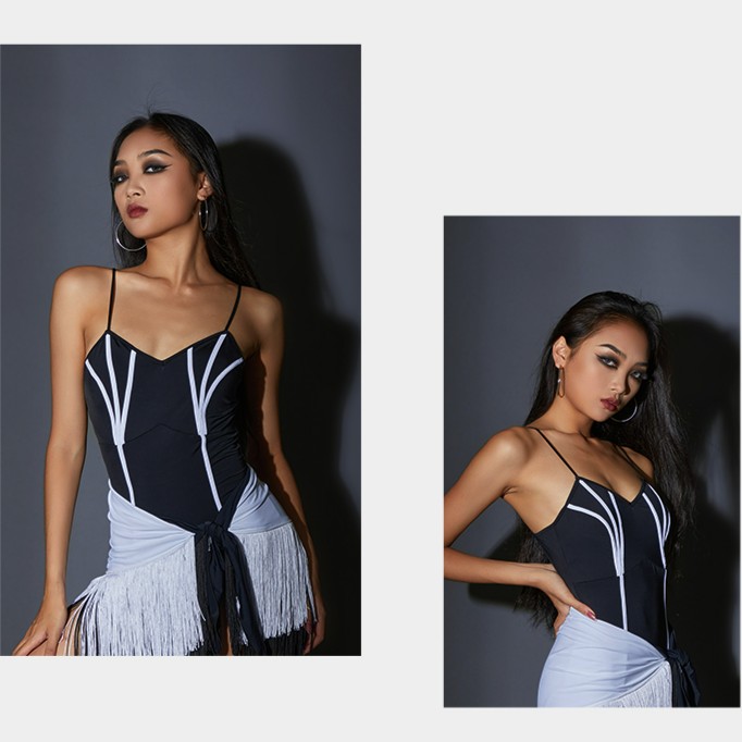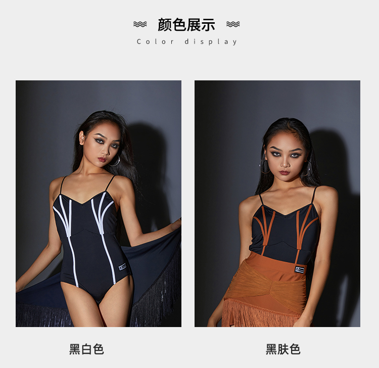 皇朝拉丁舞服新款撞色拼接吊带连体上衣带胸垫练功服形体服A1214