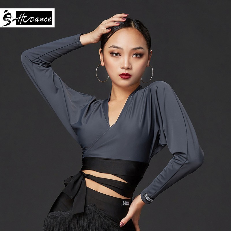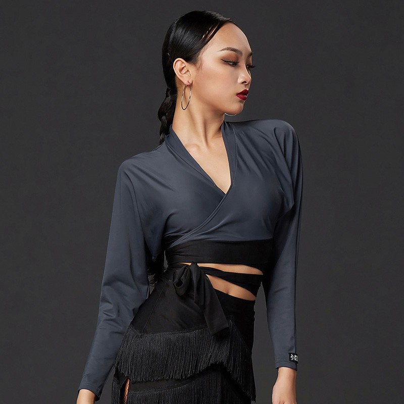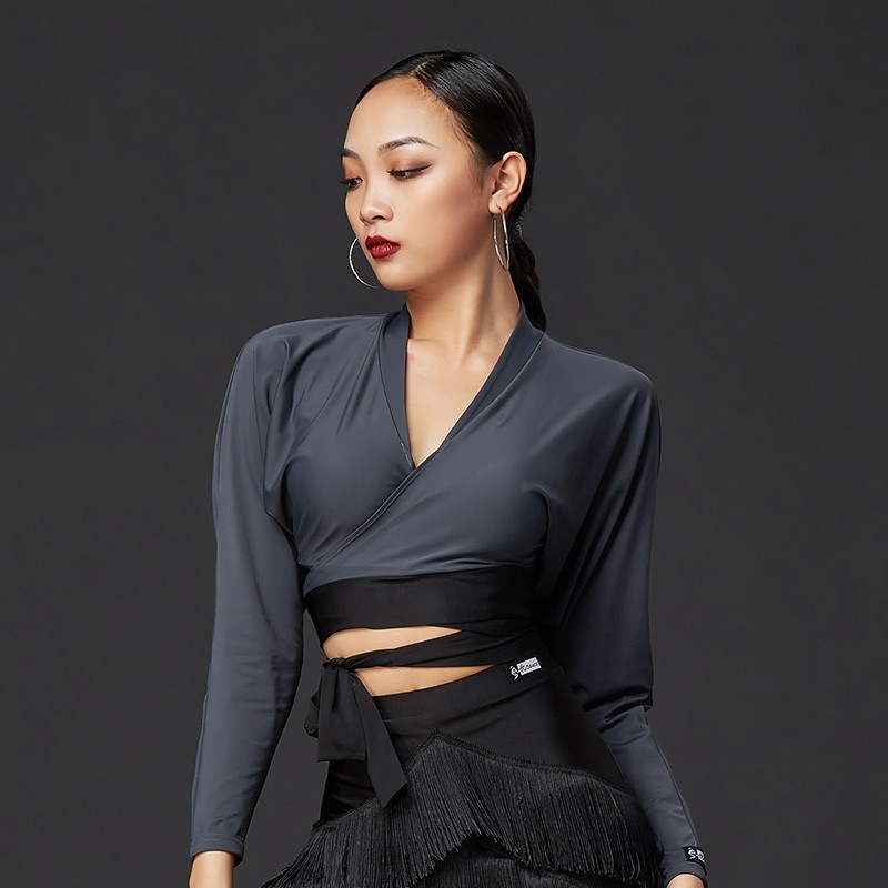皇朝拉丁舞上衣练功服女成人舞衣长袖舞蹈服国标摩登交谊舞A1144