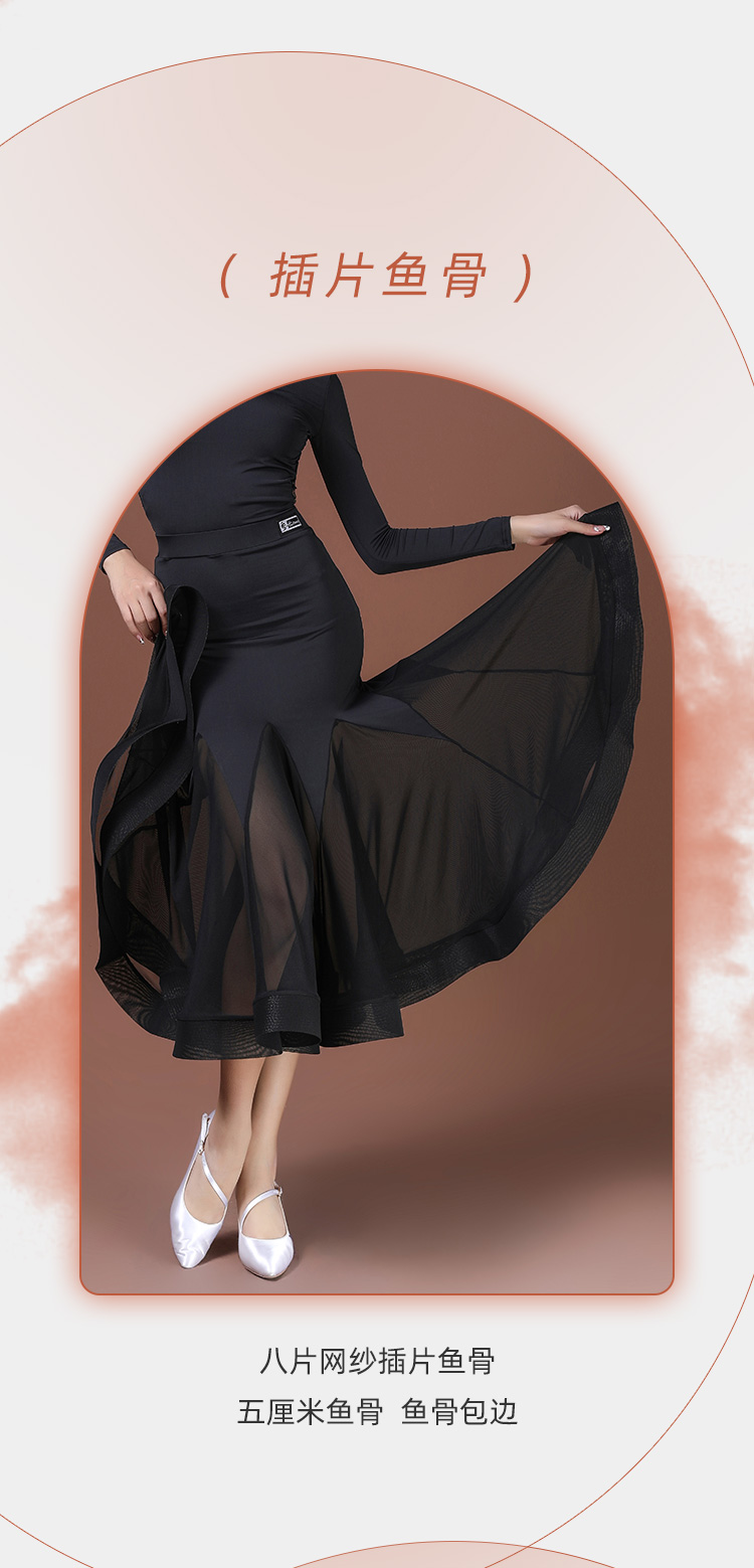 HCDANCE皇朝舞蹈 摩登舞裙新款鱼骨大裙摆半身裙黑色包臀裙 A2201