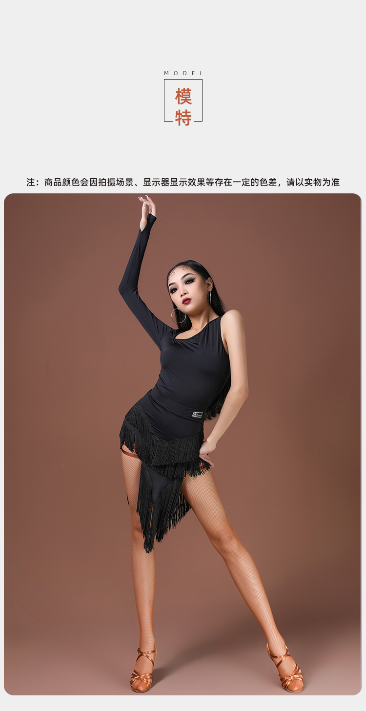 拉丁舞蹈新款时尚圆领斜肩(连体)上衣 A1231