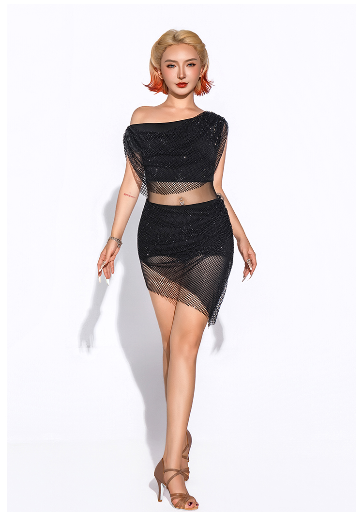 【HC系列】拉丁舞服女钻网连衣裙DL388