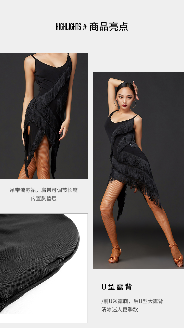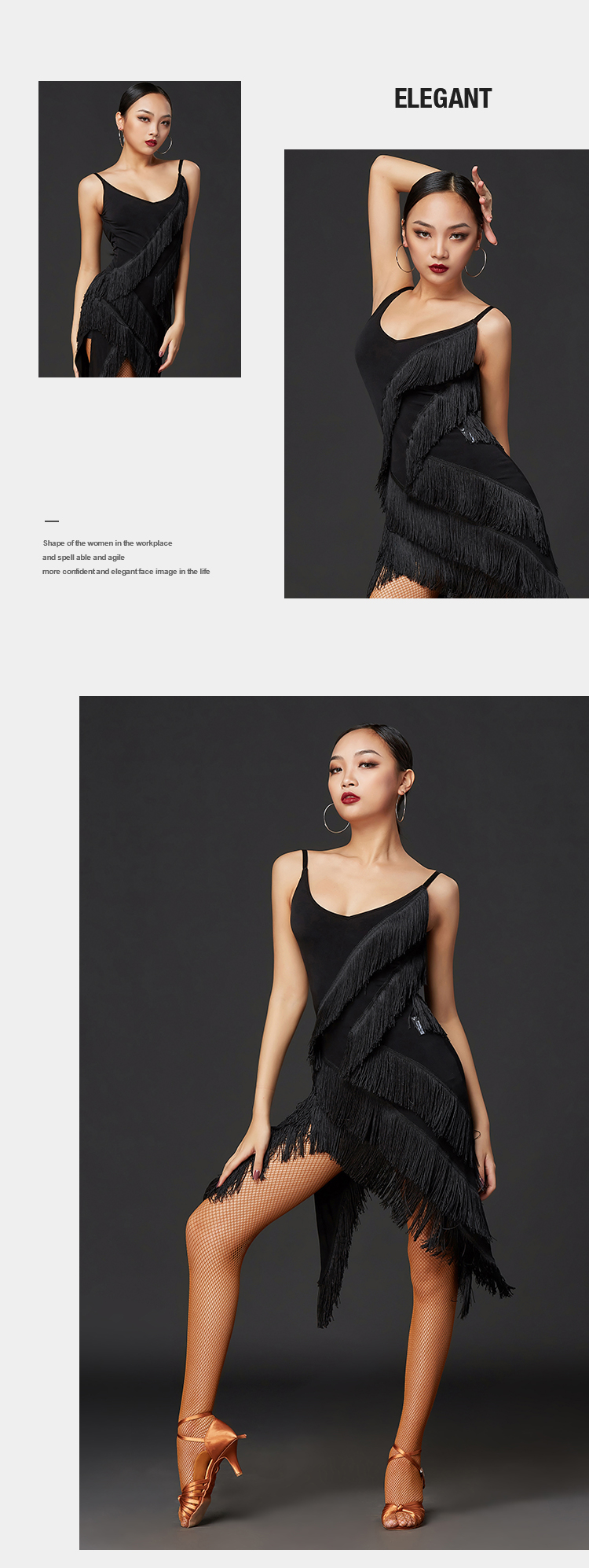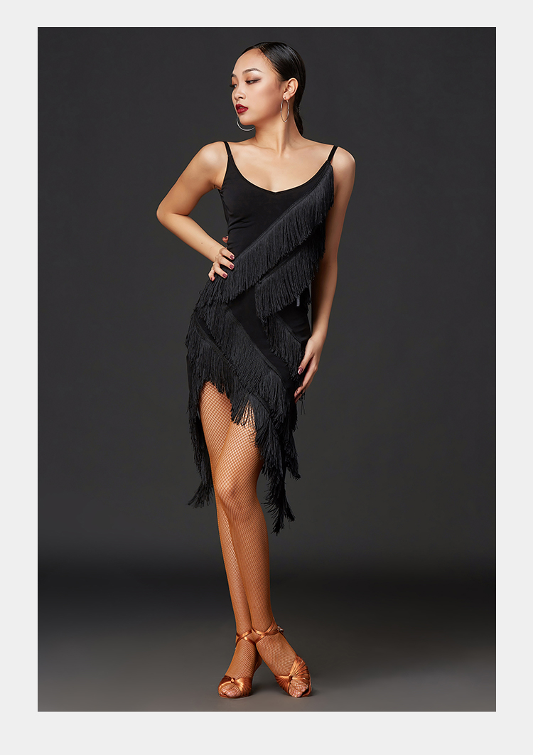 皇朝拉丁舞裙专业性感吊带流苏舞蹈连衣裙高端表演练功服女A3224