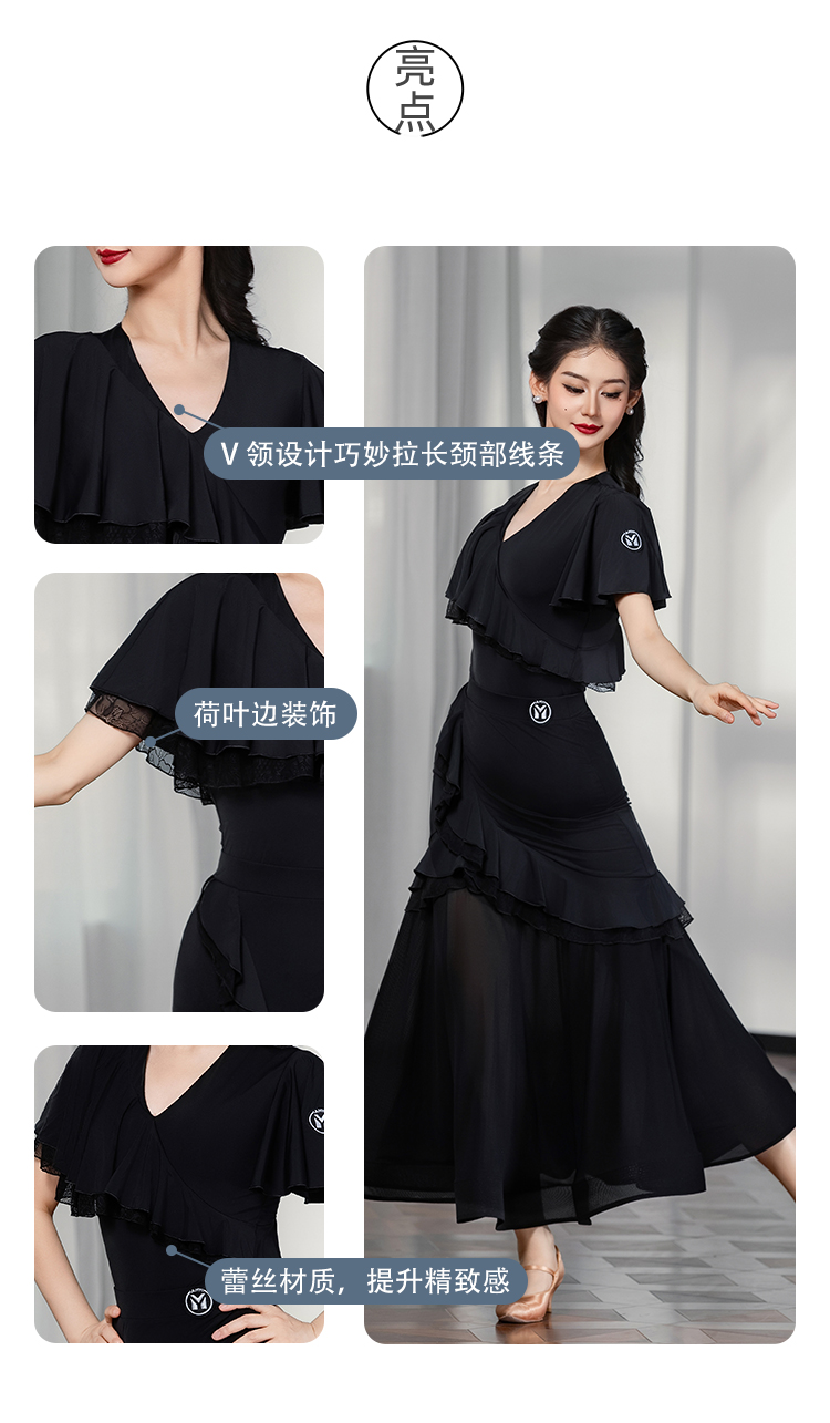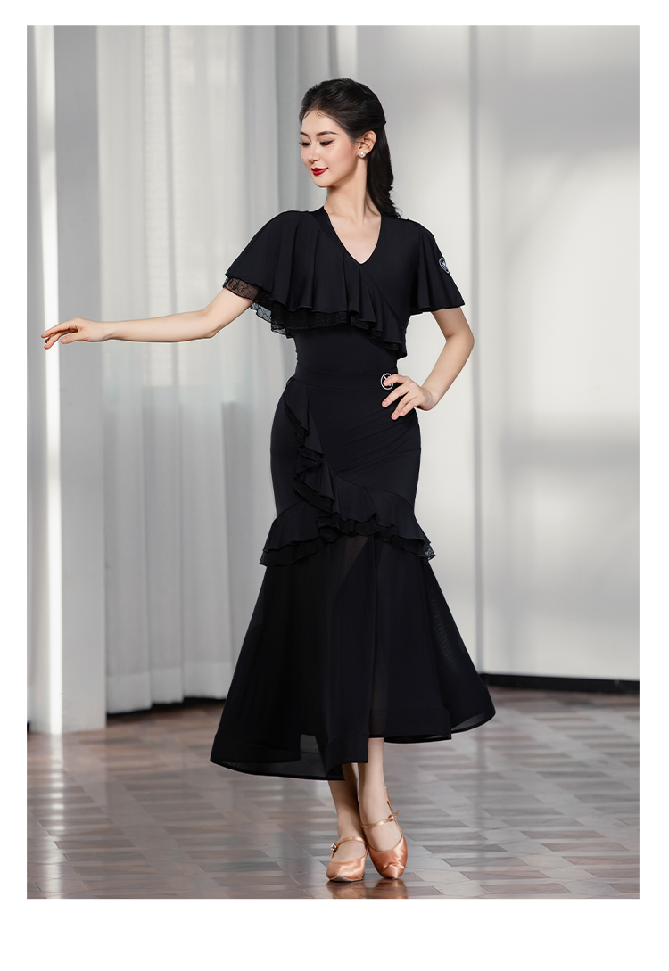 IAMYC摩登舞上衣女成人舞蹈服交谊舞练功服飘纱短袖B10129