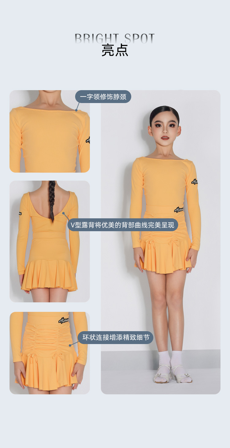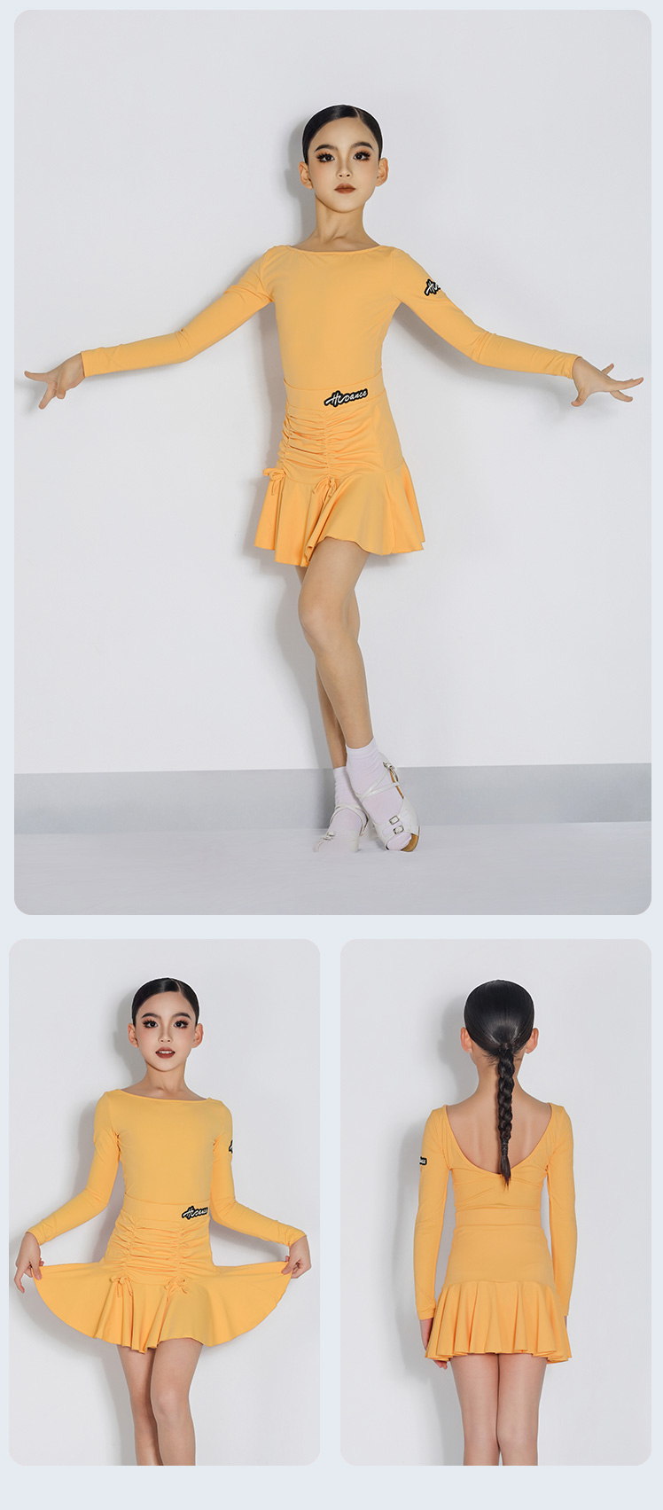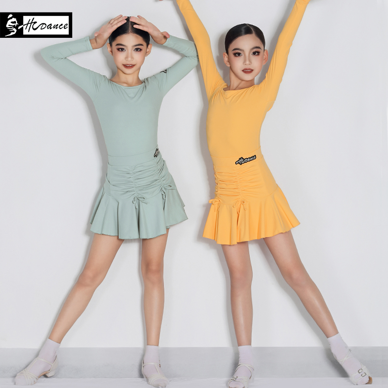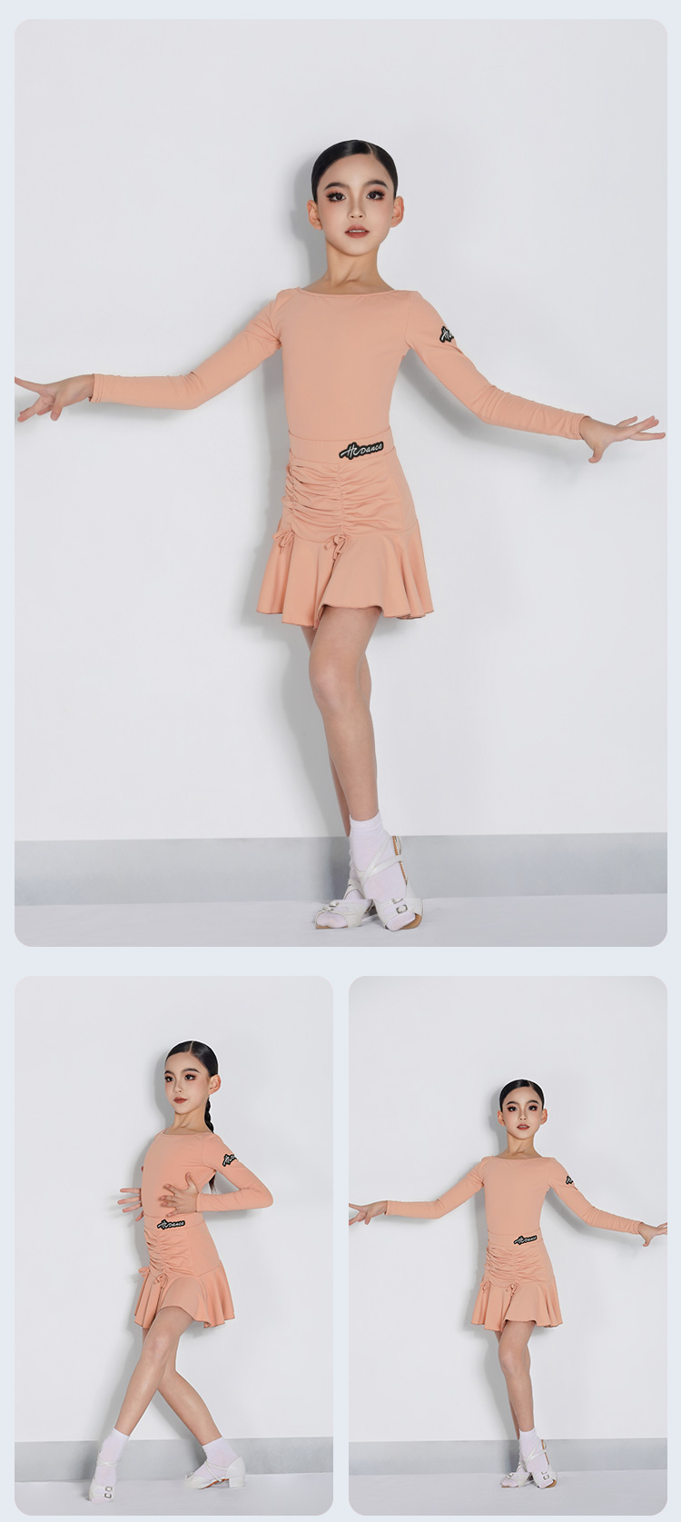 皇朝拉丁舞服练功服儿童早春新款跳舞上衣长袖舞蹈裙H7354+H6414