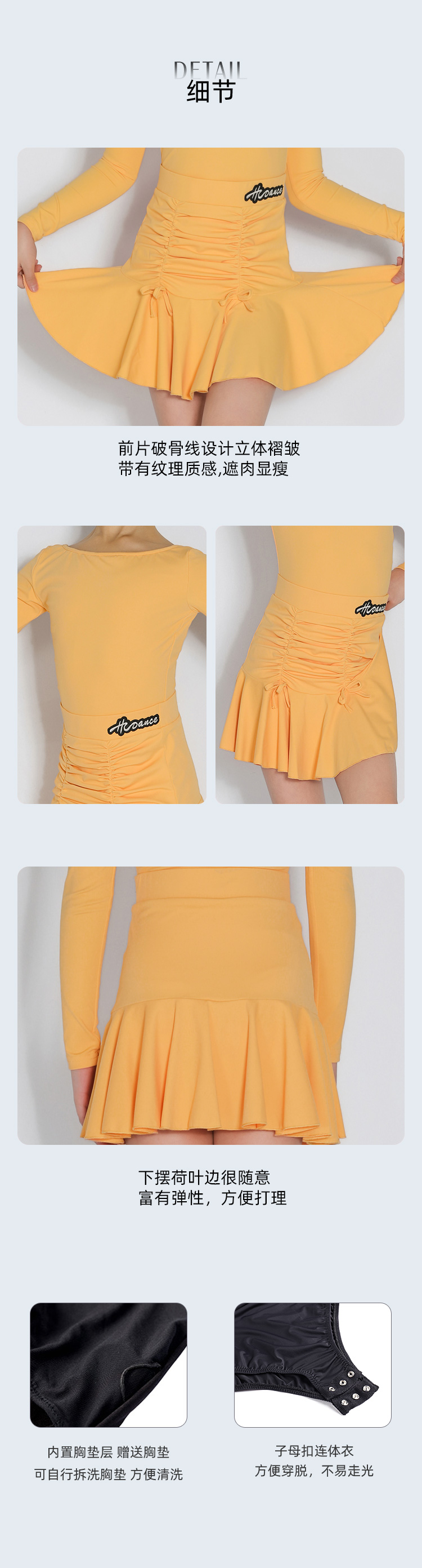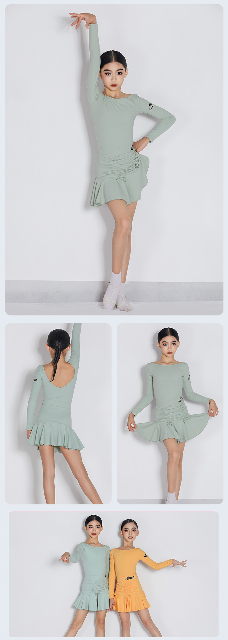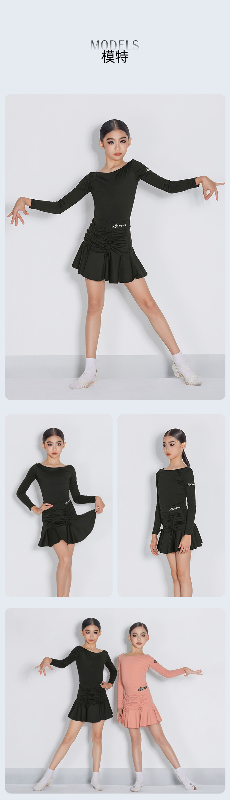 皇朝拉丁舞服练功服儿童早春新款跳舞上衣长袖舞蹈裙H7354+H6414