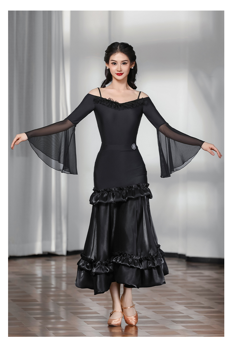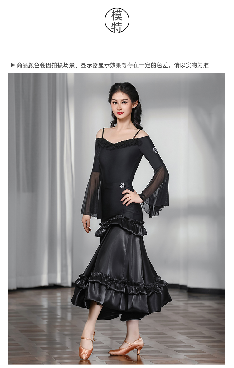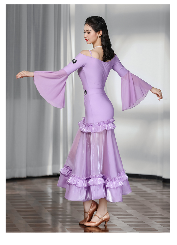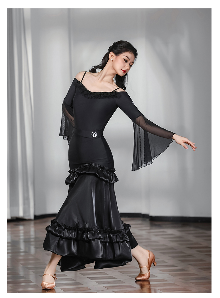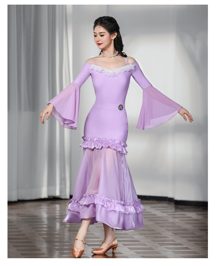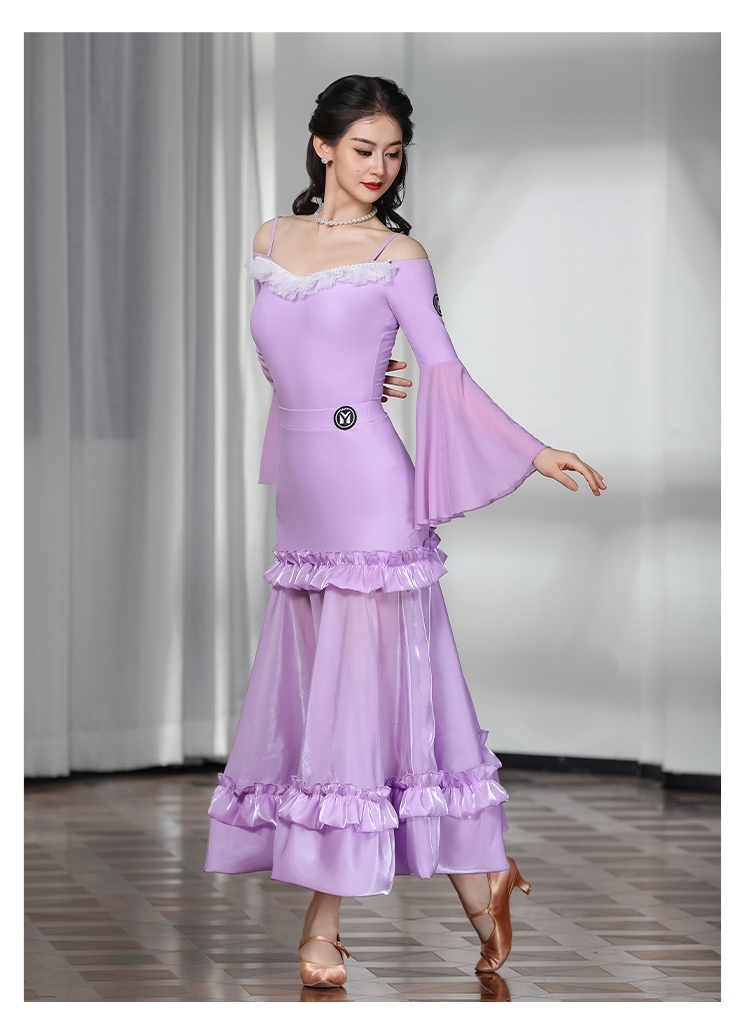 IAMYC摩登舞裙露肩荷叶边上衣大裙摆华尔兹舞蹈裙B10127+B20088
