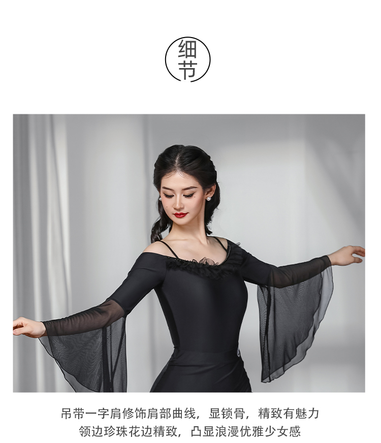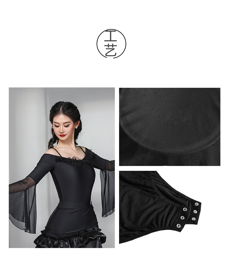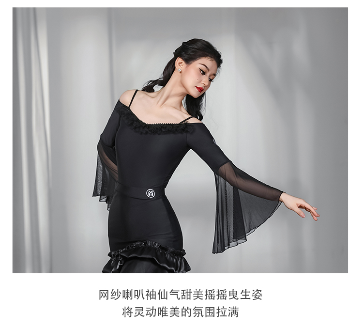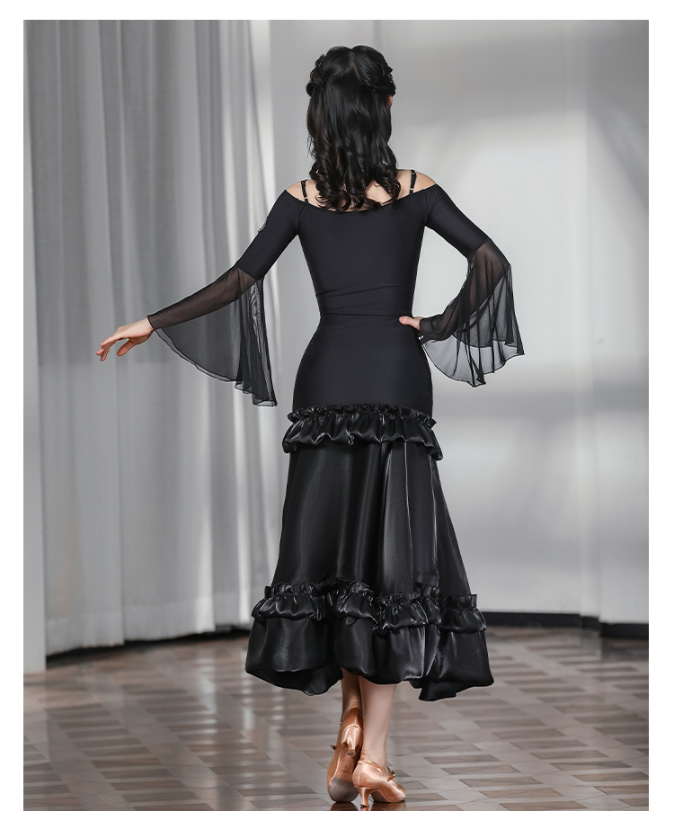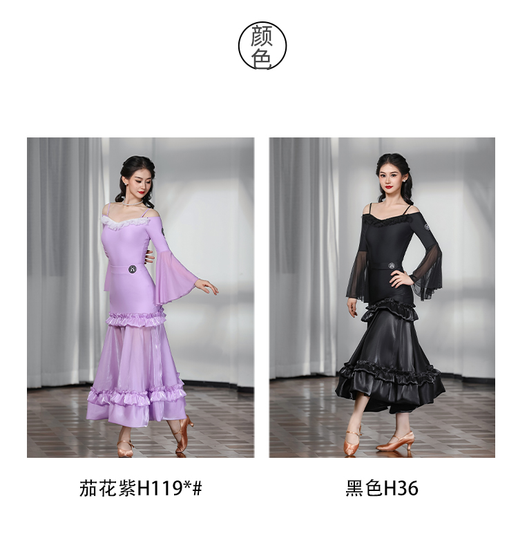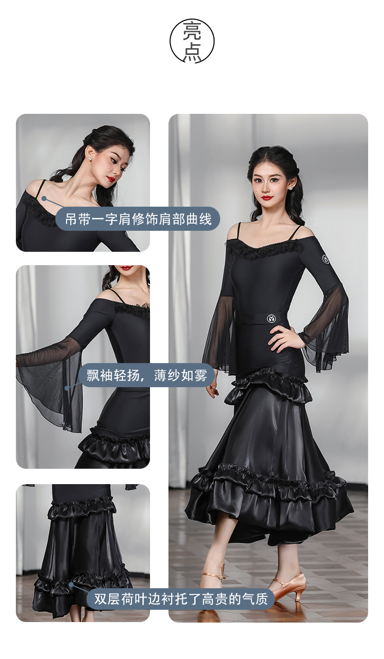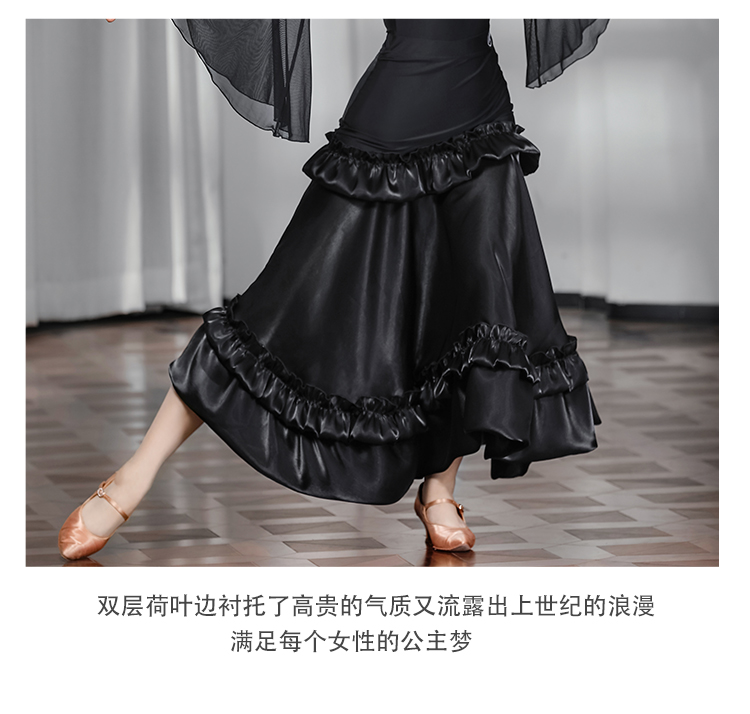 IAMYC摩登舞裙露肩荷叶边上衣大裙摆华尔兹舞蹈裙B10127+B20088