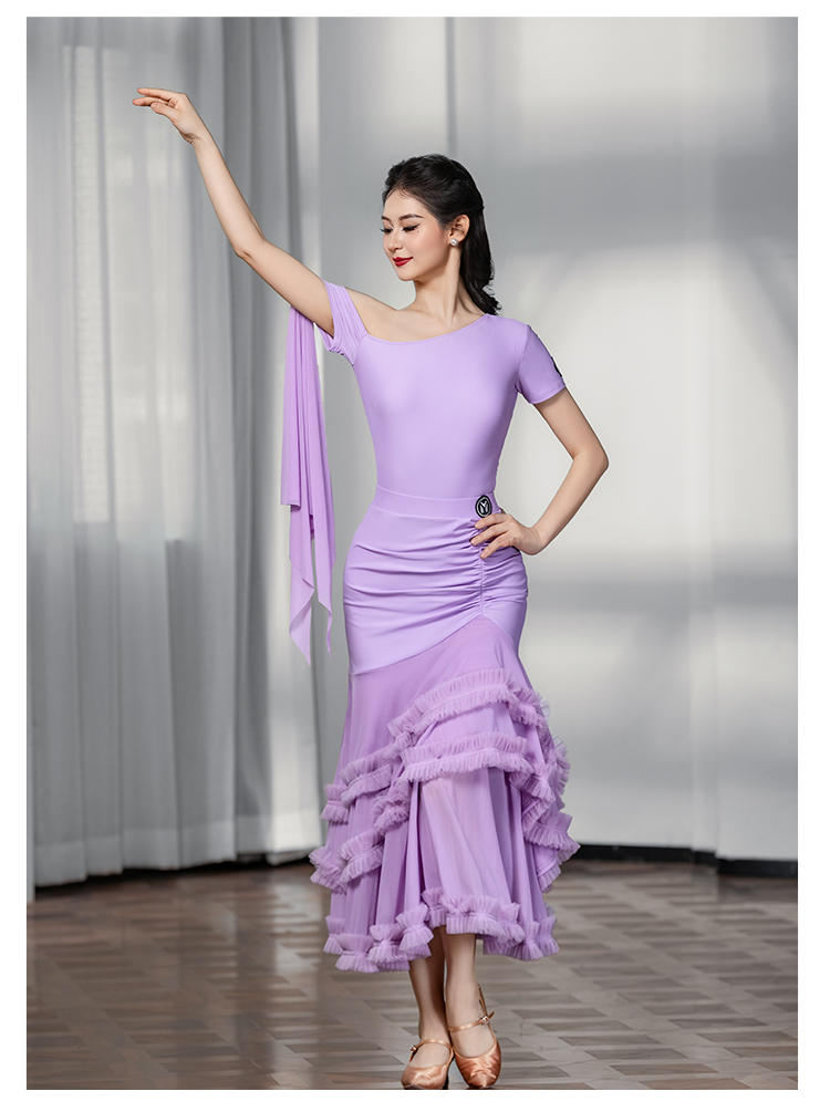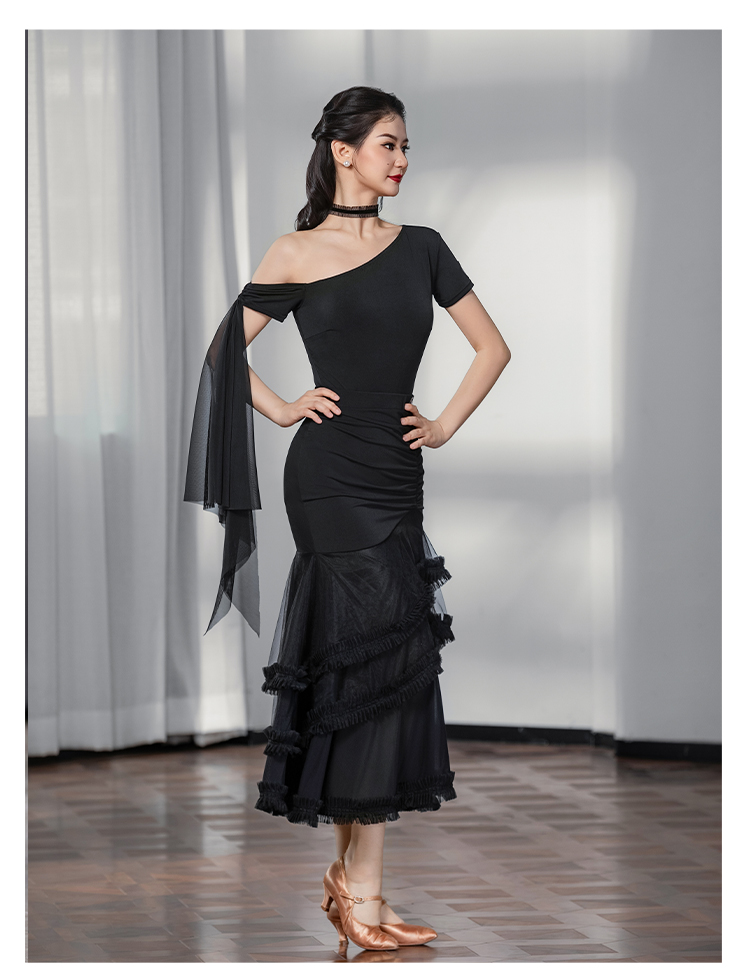 IAMYC摩登舞裙女成人斜肩仙女款上衣大摆花边半身裙B10137+B20098