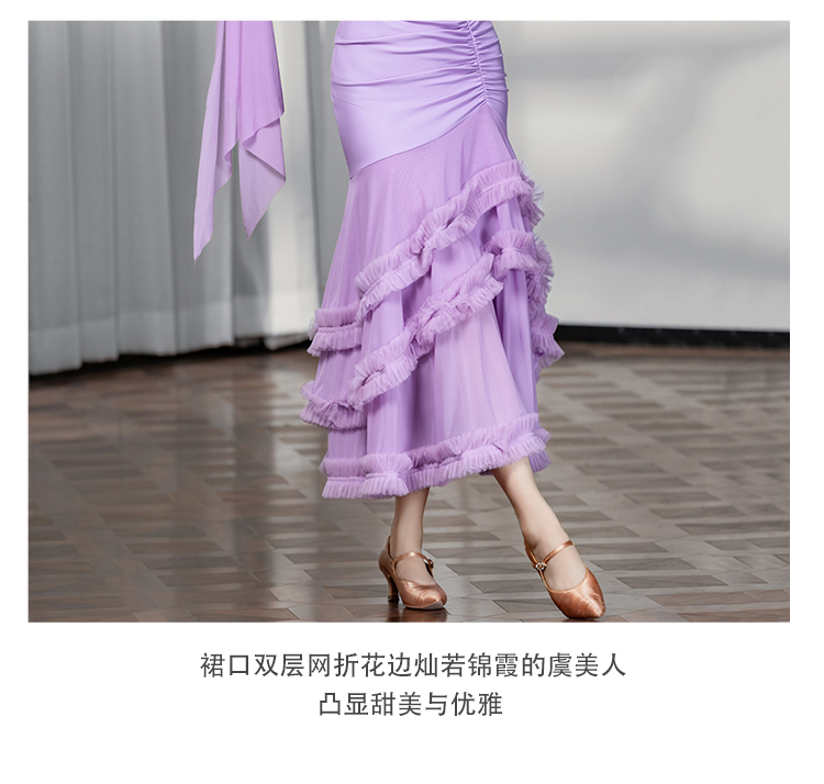 IAMYC摩登舞服女成新款斜肩上衣网纱下摆花边网纱裙B10137+B20098