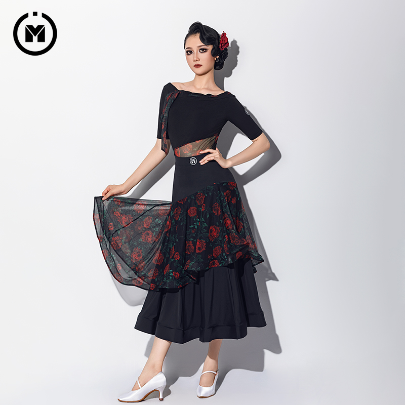 IAMYC摩登舞裙女新款国标舞华尔兹交谊舞恰恰舞裙B10147+B20065