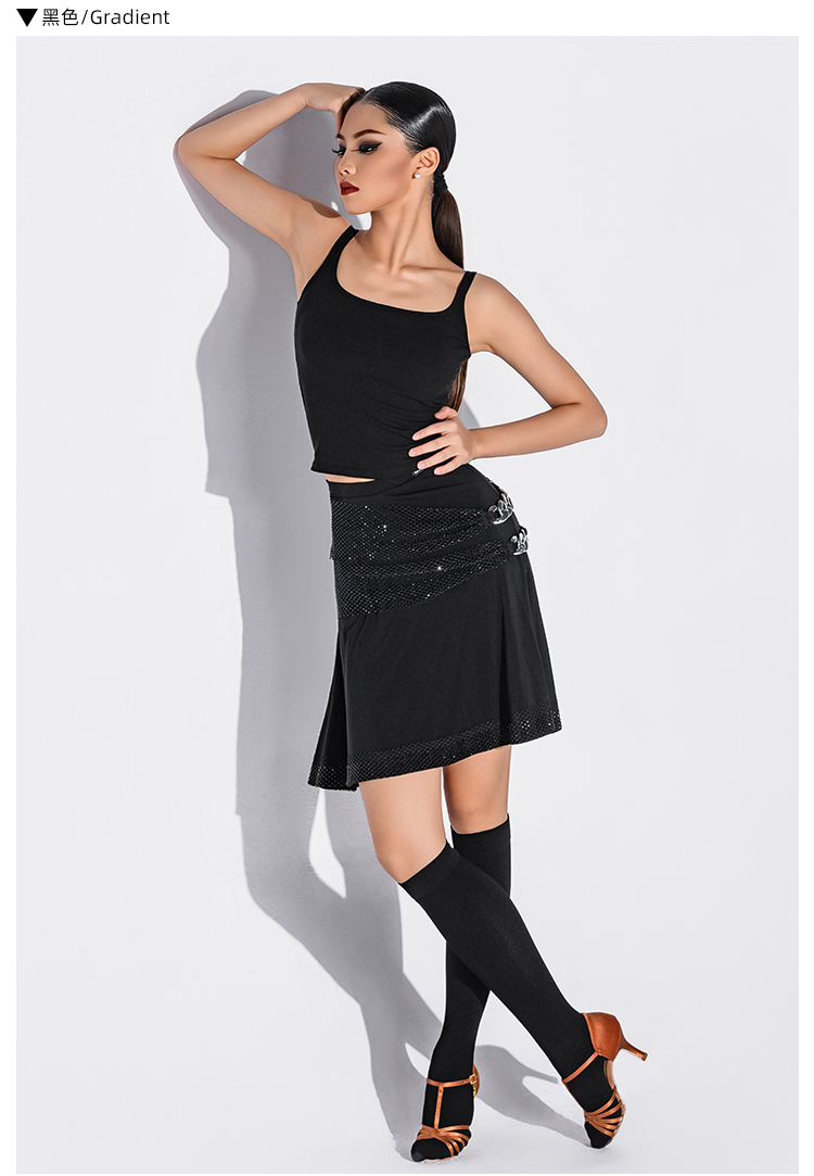 皇朝舞服新款成人女练习服专业拉丁舞服双吊带上衣A1469+A8001