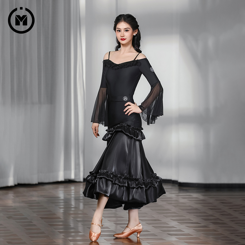 IAMYC摩登舞裙露肩荷叶边上···