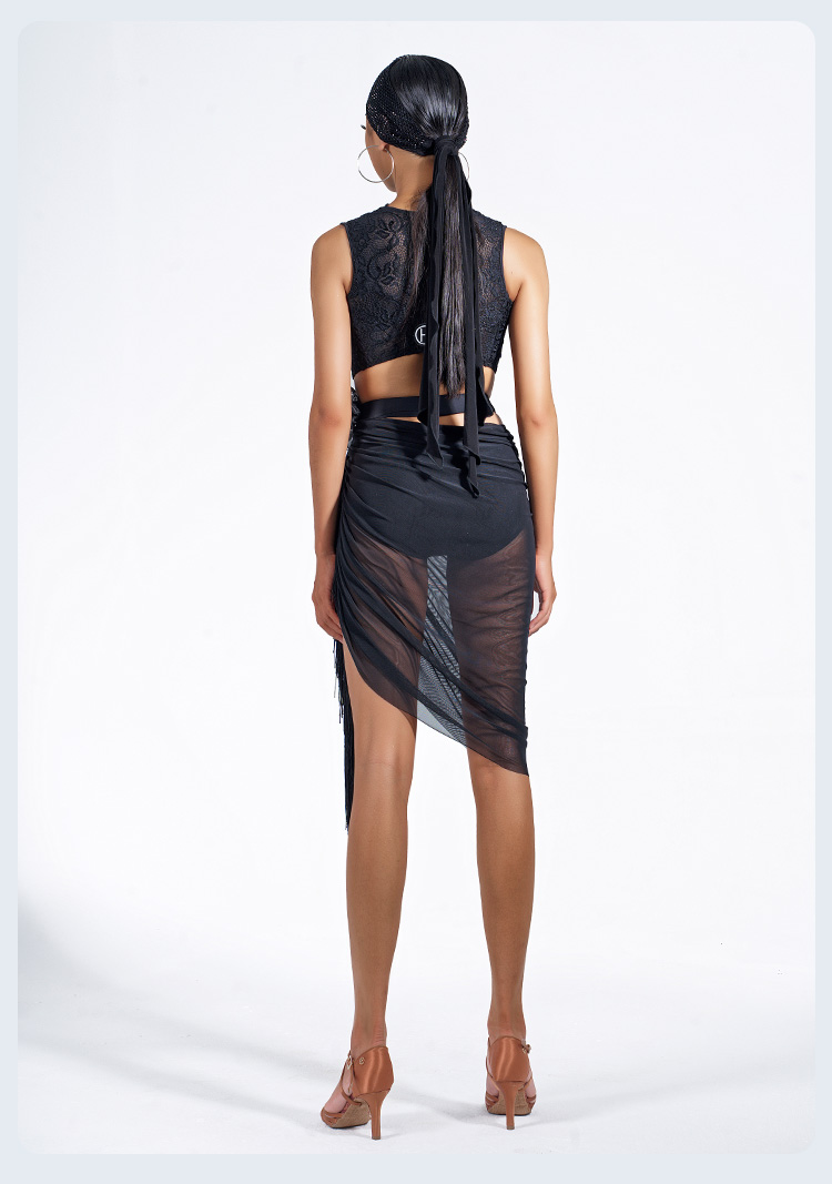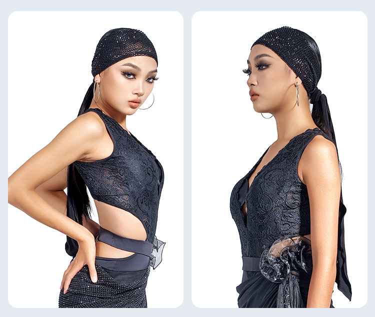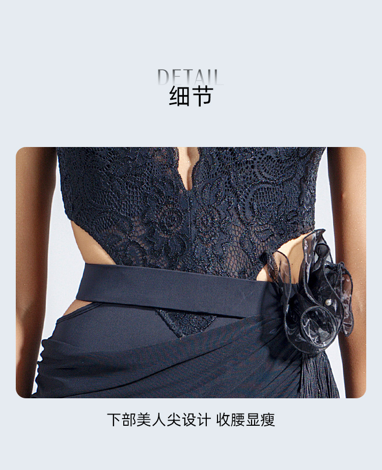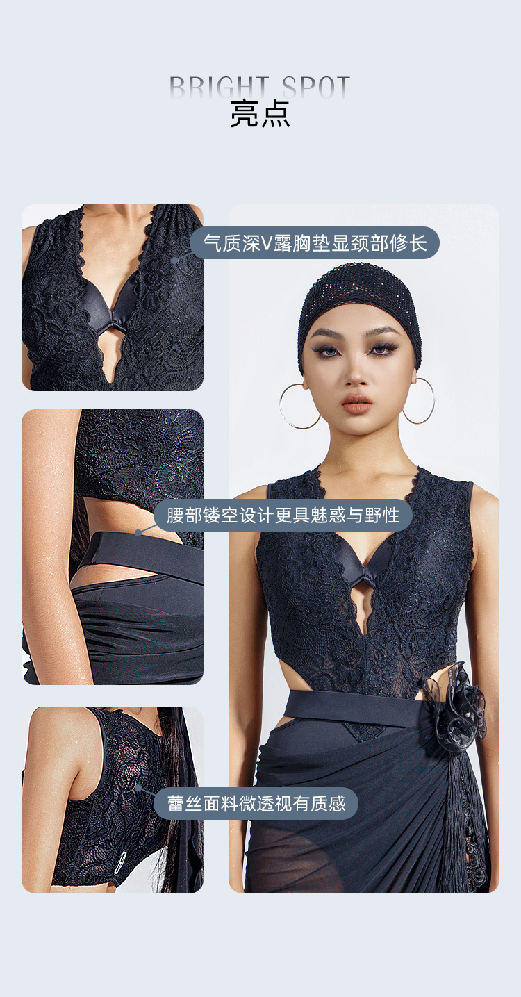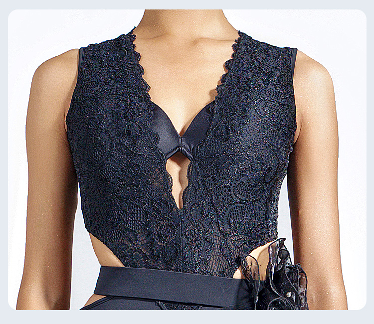 HC·DANCE拉丁舞服新款蕾丝花边上衣无袖性感带胸垫连体衣 DS1011