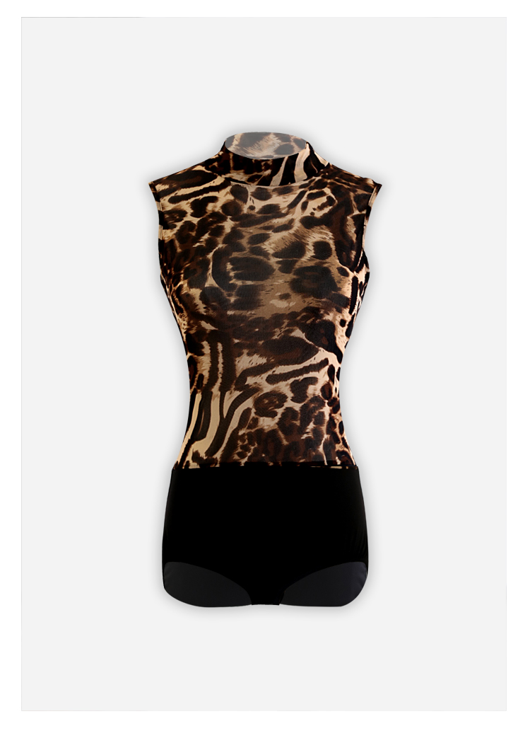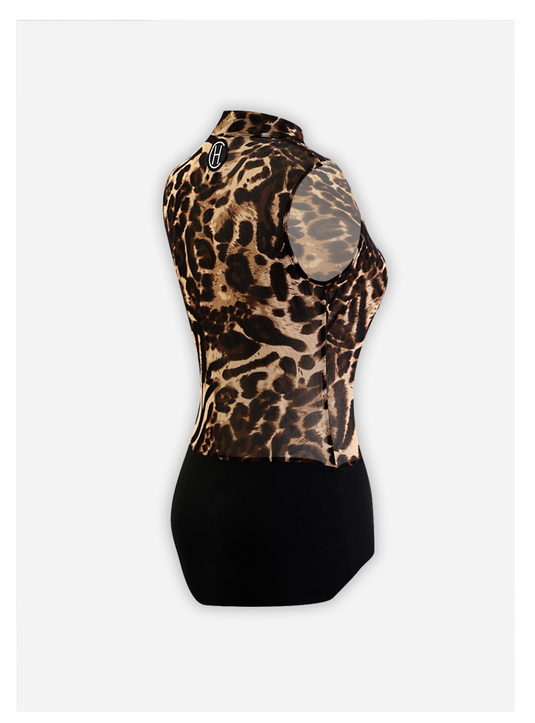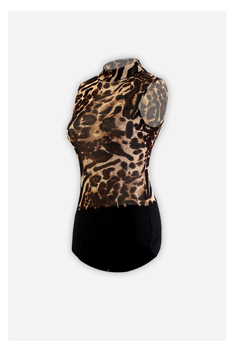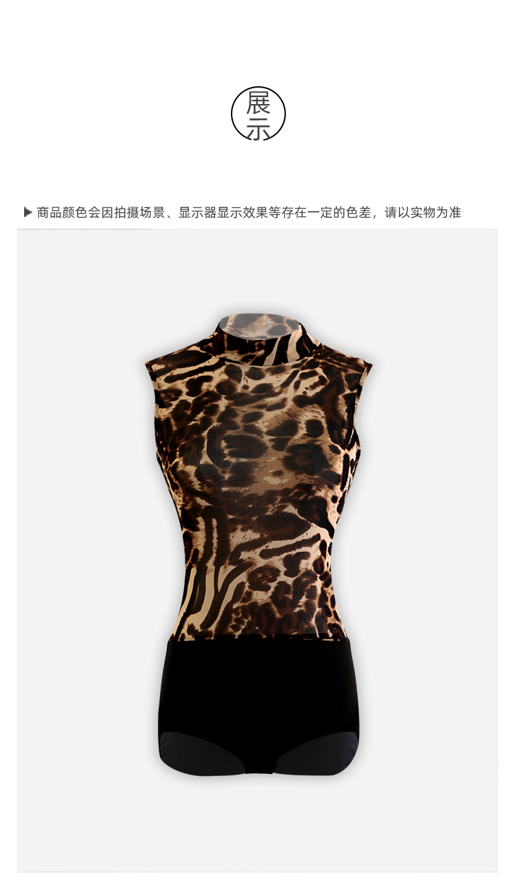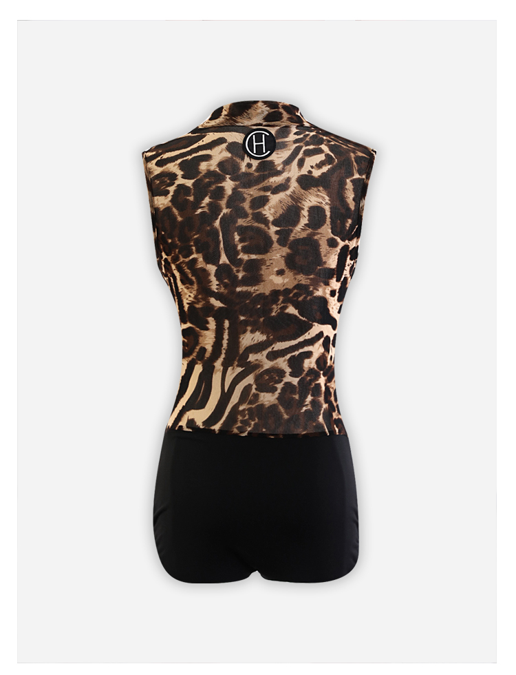 HC·DANCE拉丁舞服新款女成练功服豹纹网纱微透无袖连体上衣DS1036