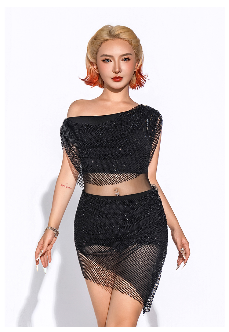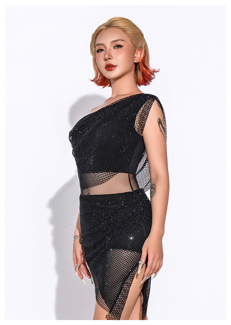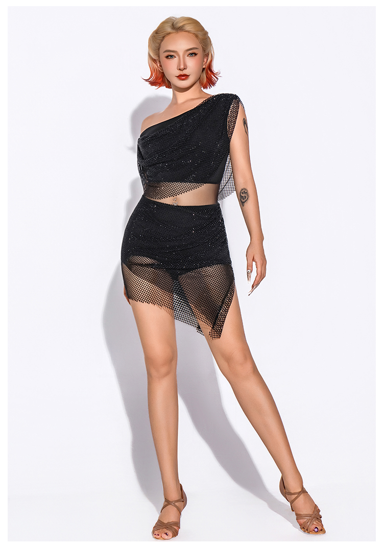 【HC系列】拉丁舞服女钻网连衣裙DL388