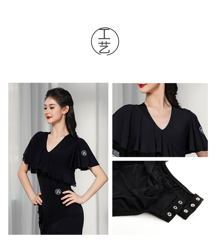IAMYC摩登舞上衣女成人舞蹈服交谊舞练功服飘纱短袖B10129