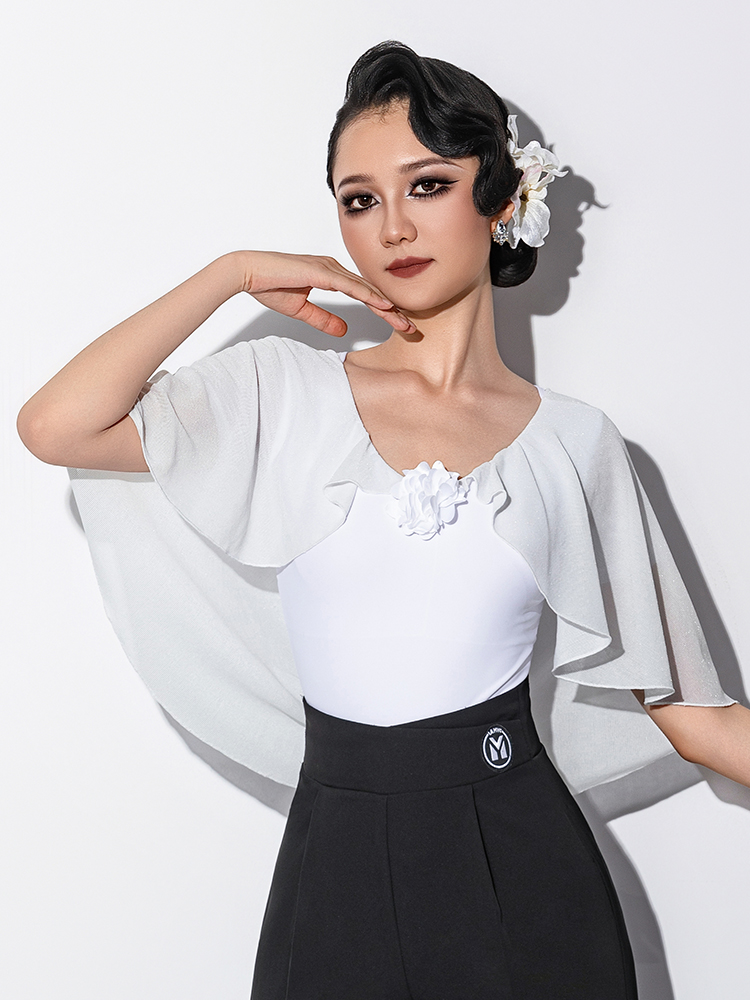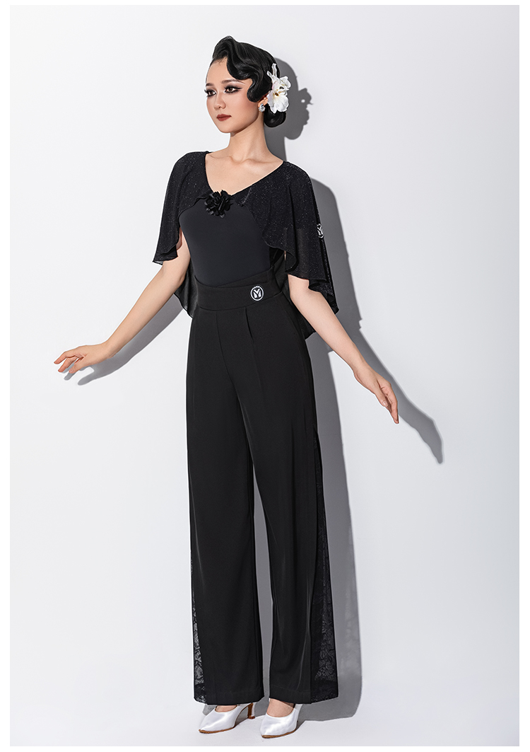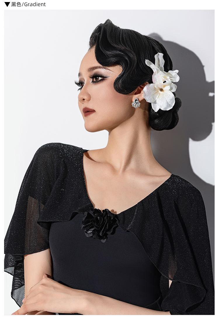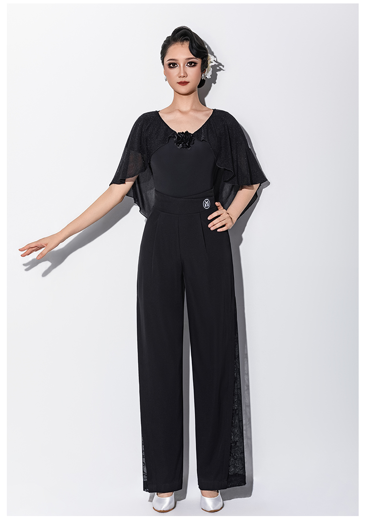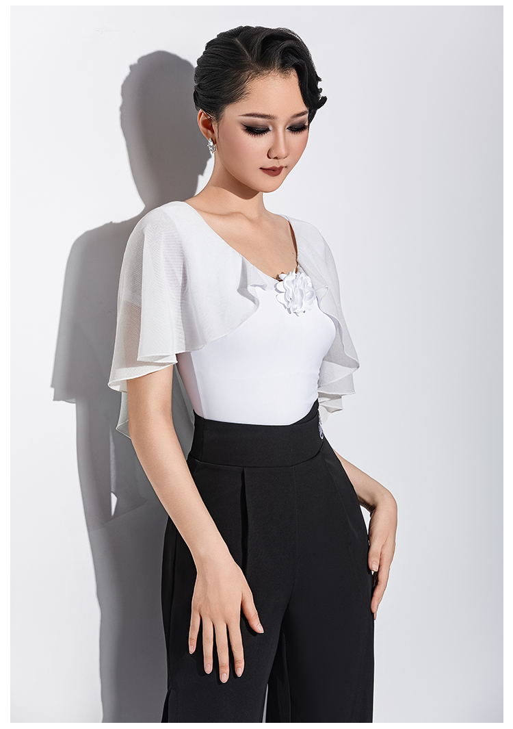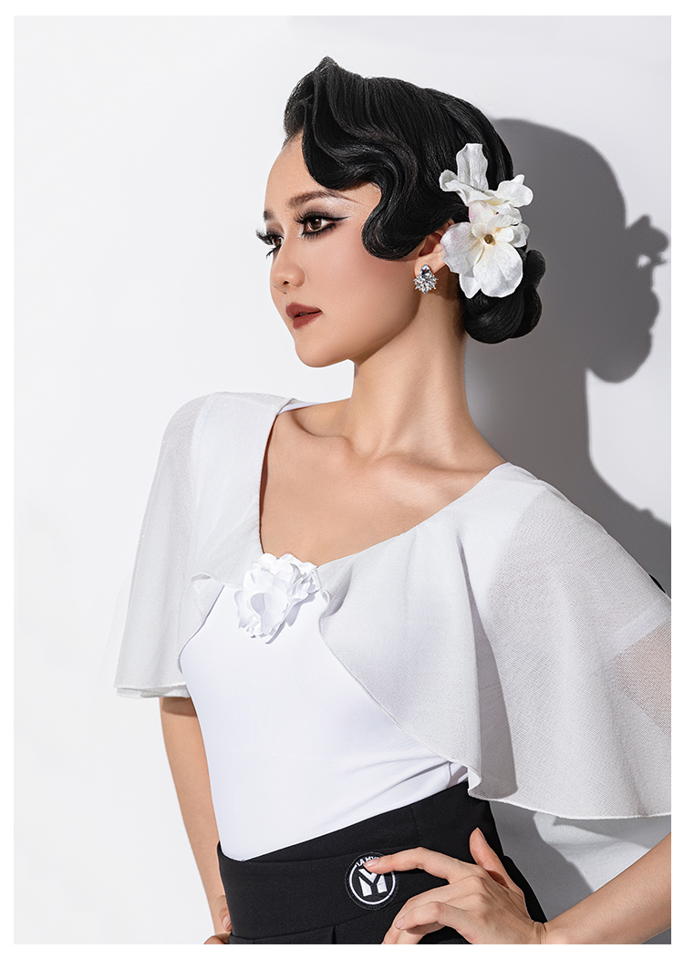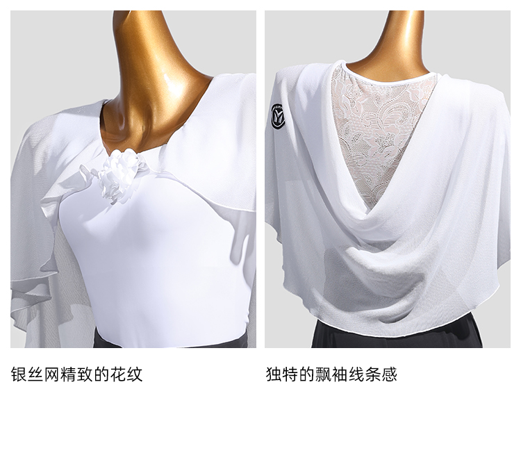 IAMYC新款摩登舞新款交谊舞华尔兹V领立体花飘袖上衣B10167