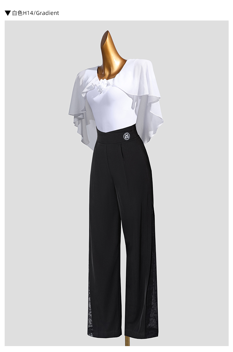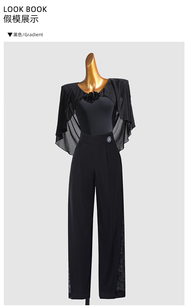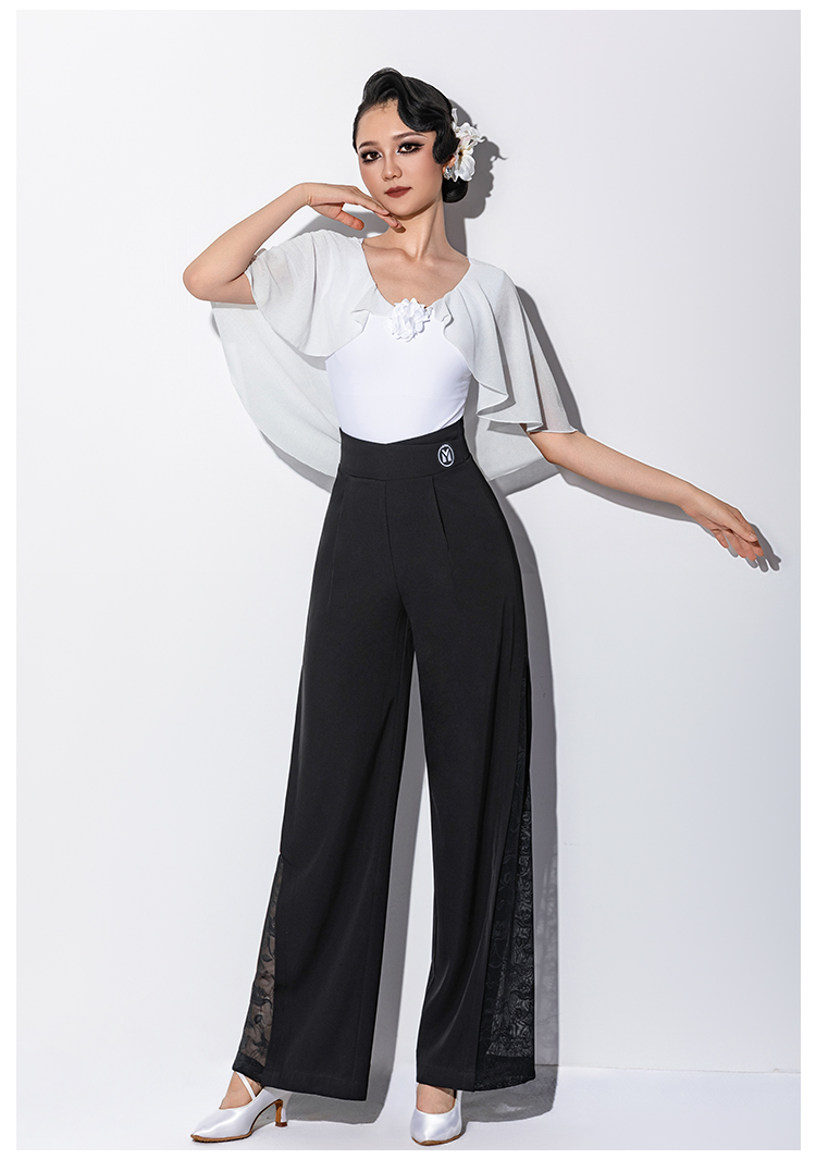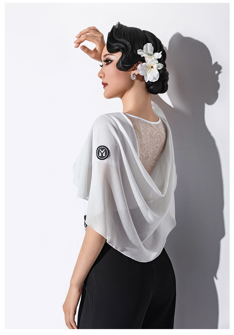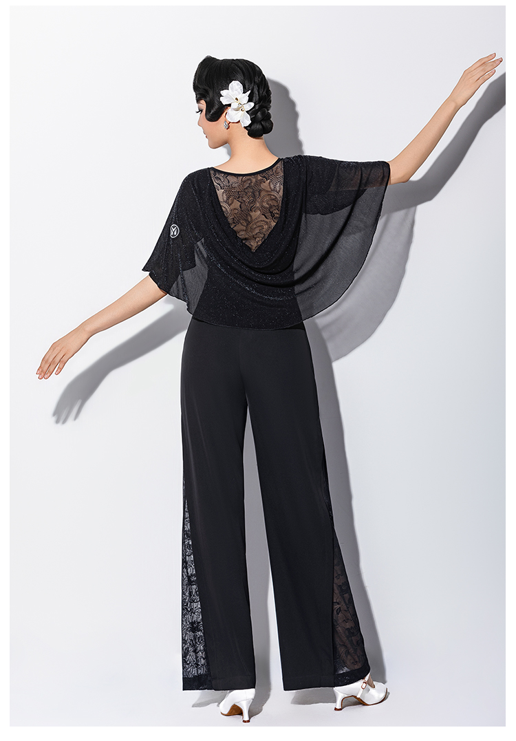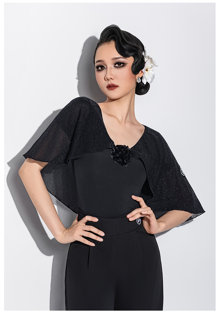 IAMYC新款摩登舞新款交谊舞华尔兹V领立体花飘袖上衣B10167
