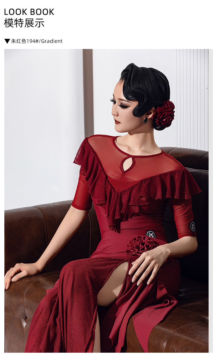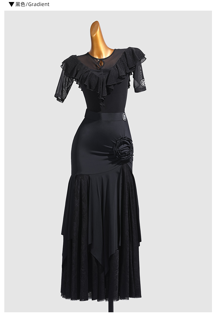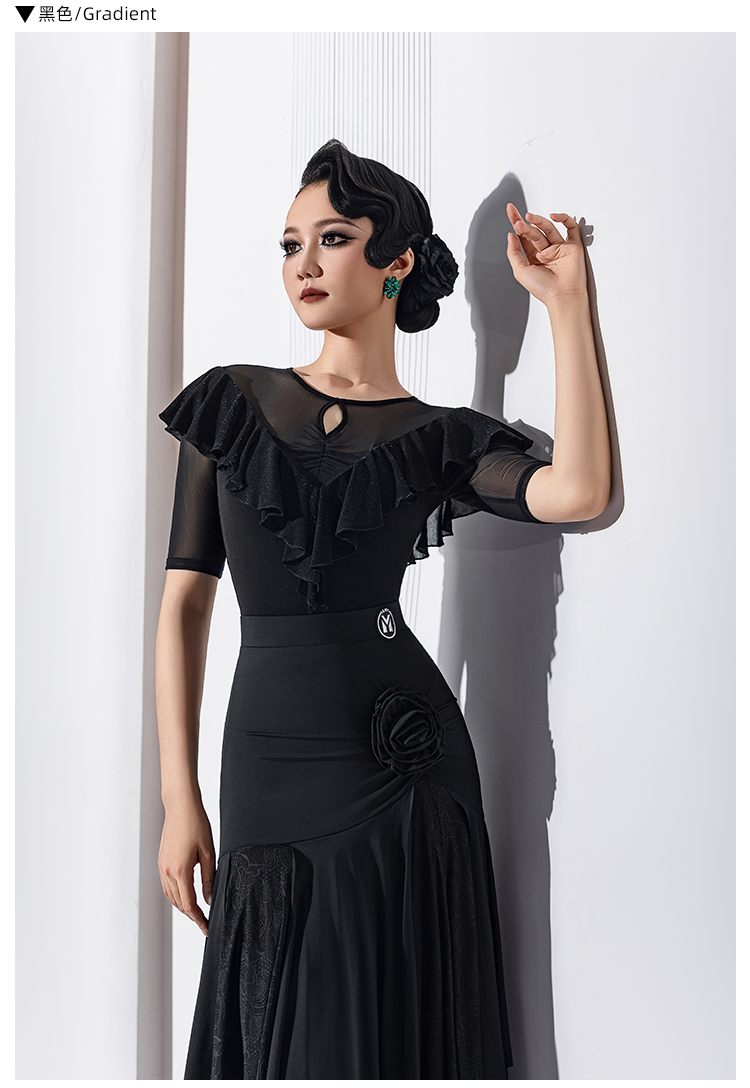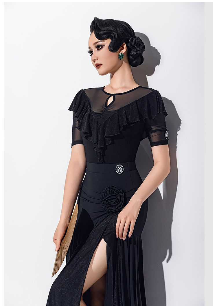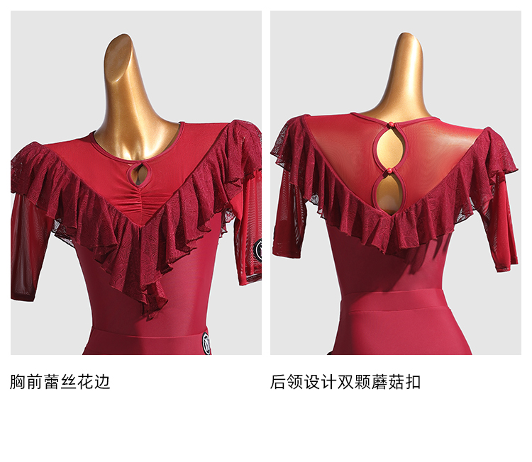 IAMYC新款摩登舞服圆领五分袖银丝布荷叶边连体衣B10168