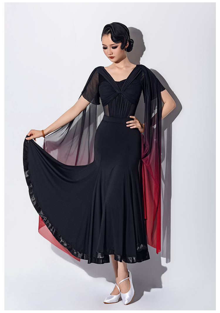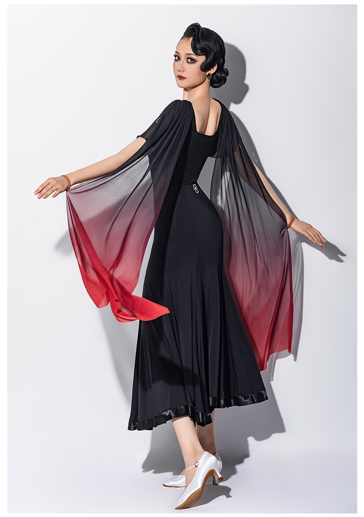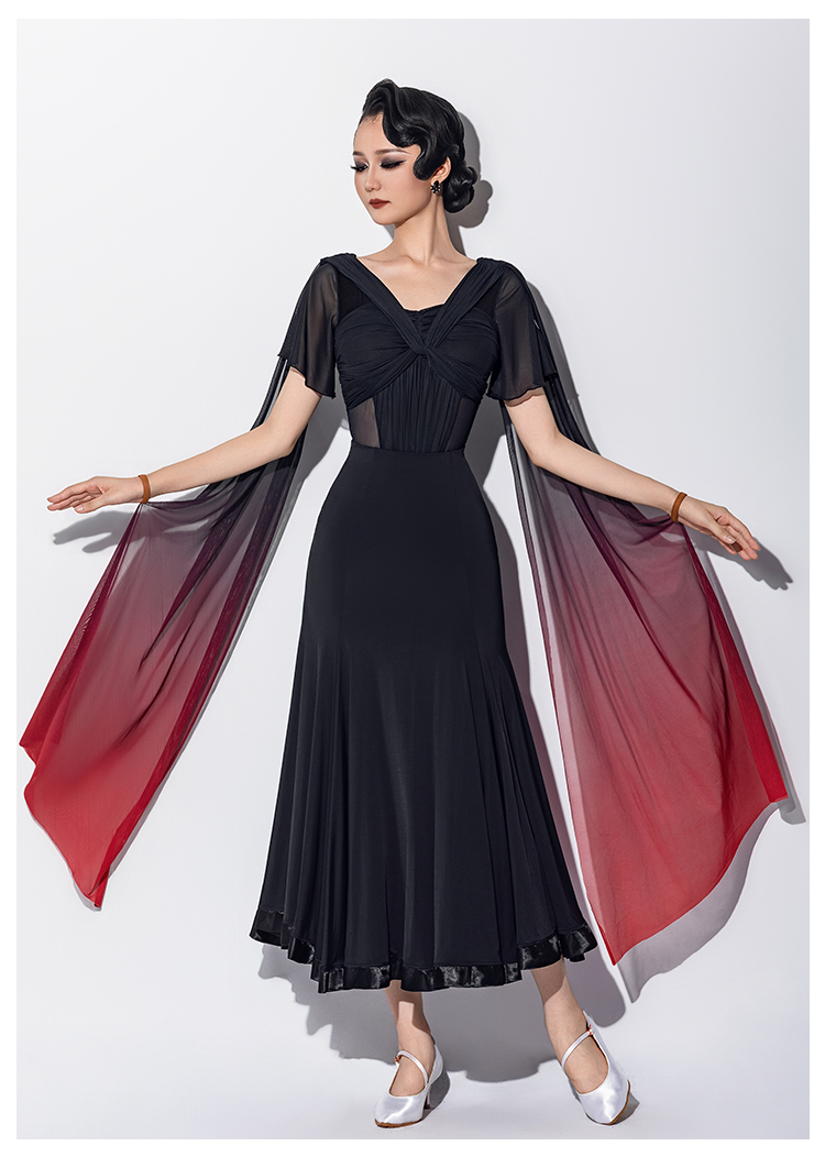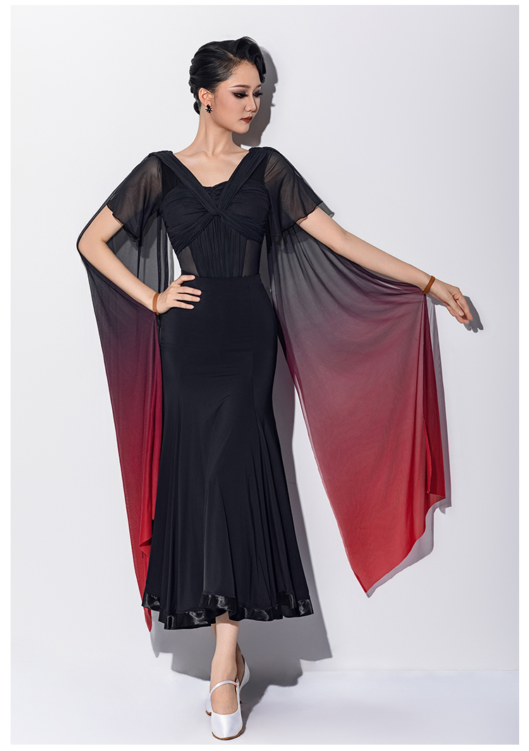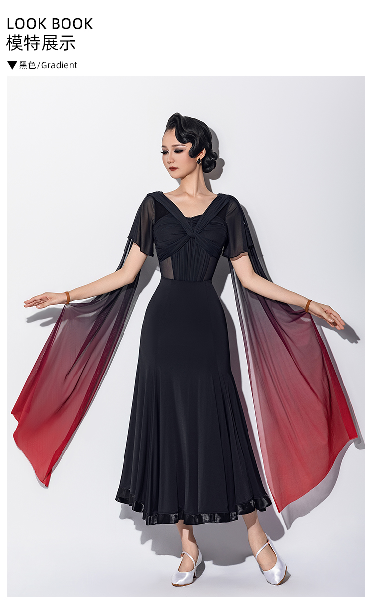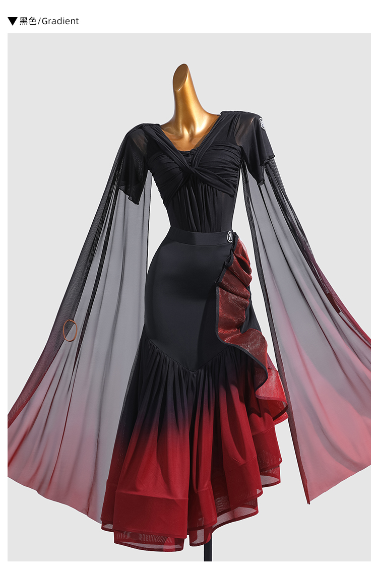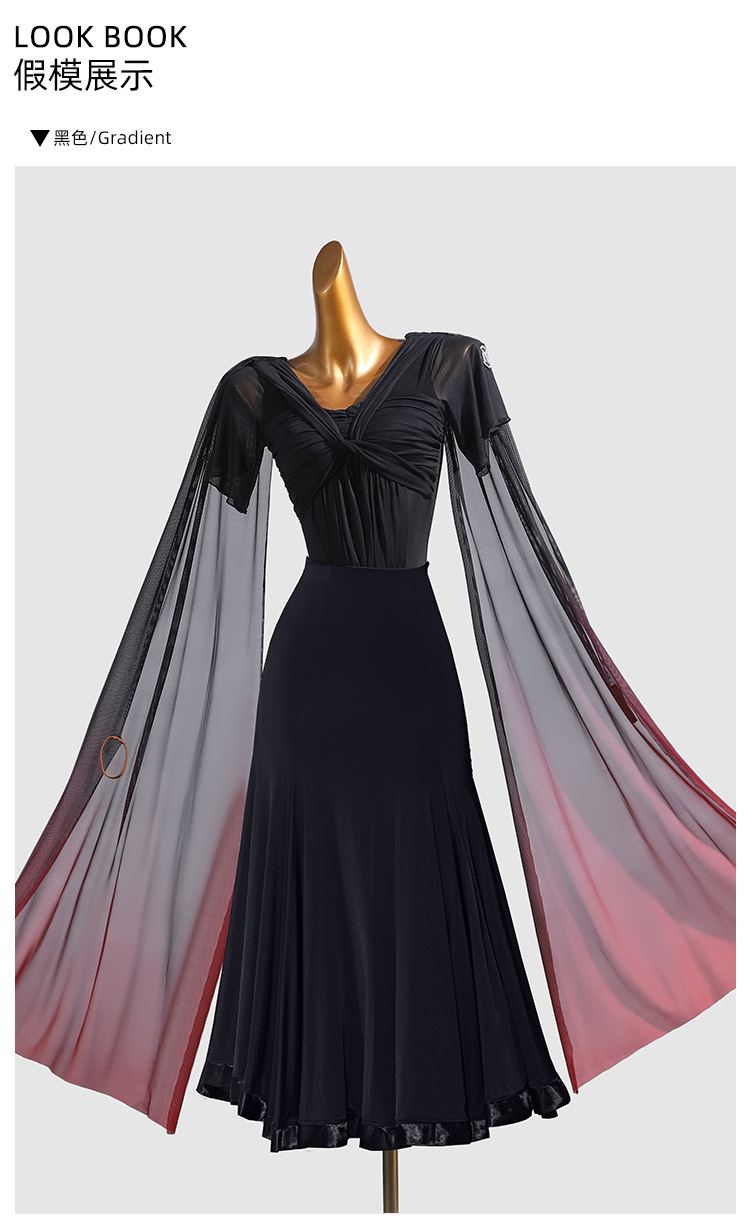 IAMYC新款摩登舞交谊舞喇叭袖渐变飘带连体上衣B10161+B20011
