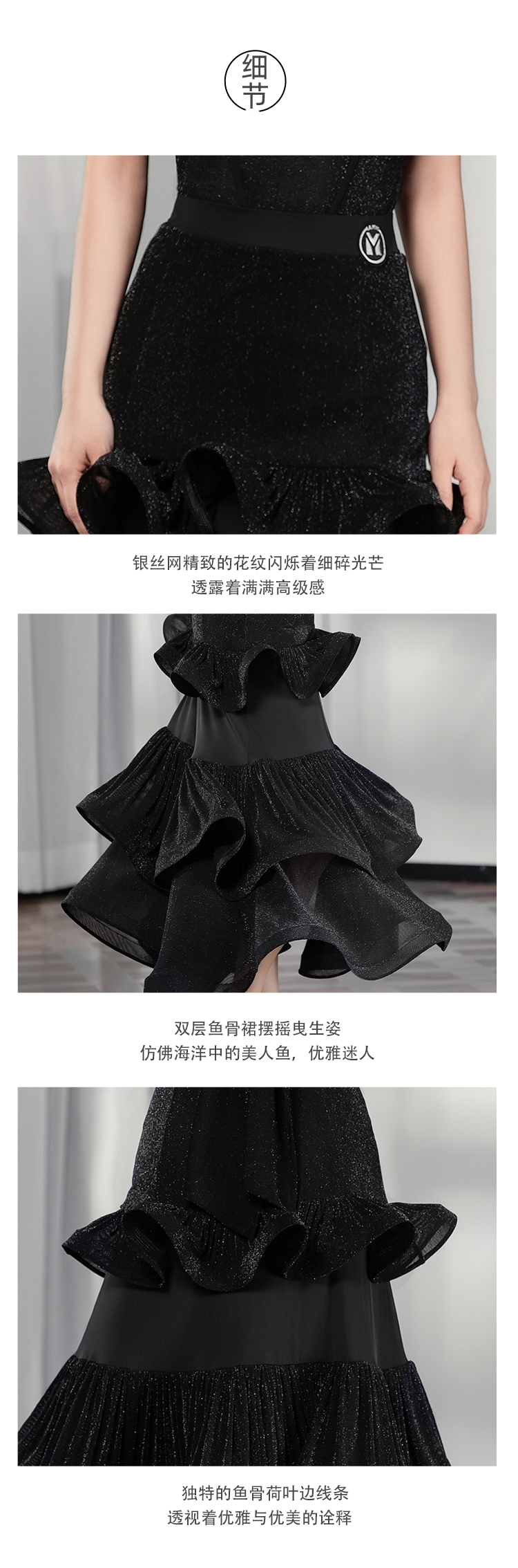 IAMYC摩登交谊舞裙分体设计大摆裙优雅半身裙舞蹈服装B20091