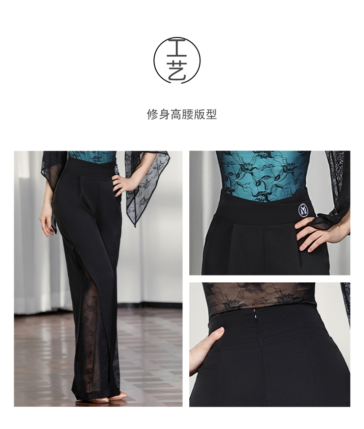 IAMYC拼接长裤高腰阔腿裤法式休闲裤春夏宽松显瘦舞蹈裤B20099