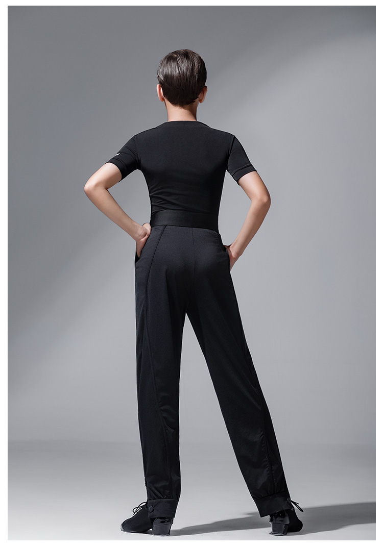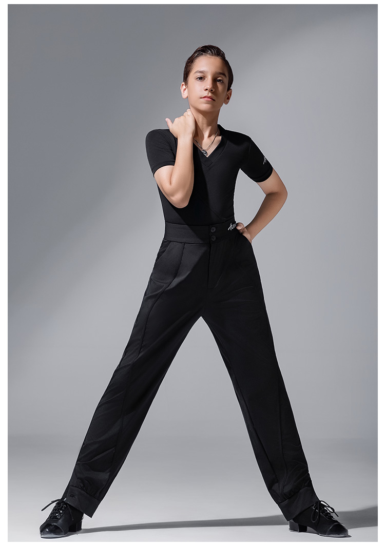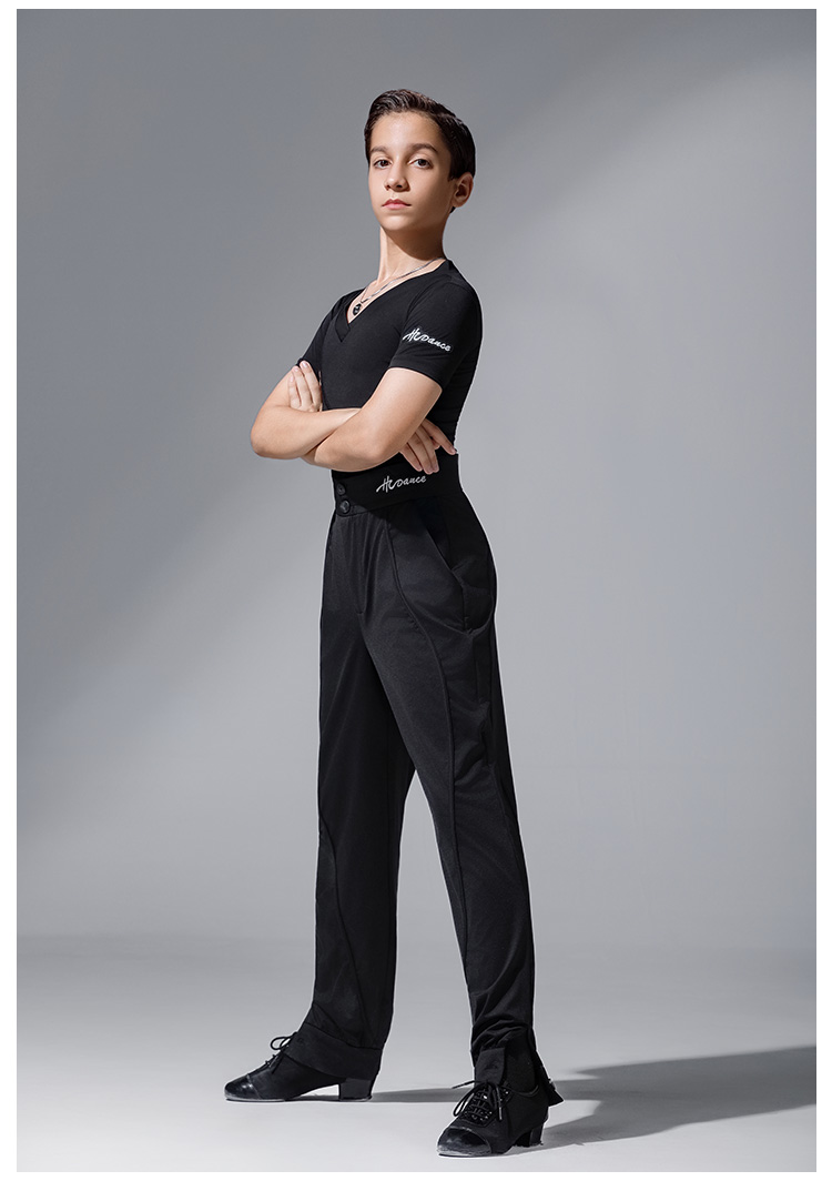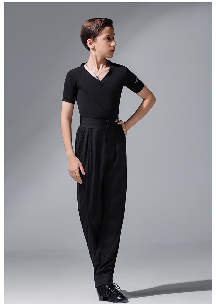 皇朝拉丁新款拉丁舞服男童练功服儿童短袖上衣黑色训练服 HN5096