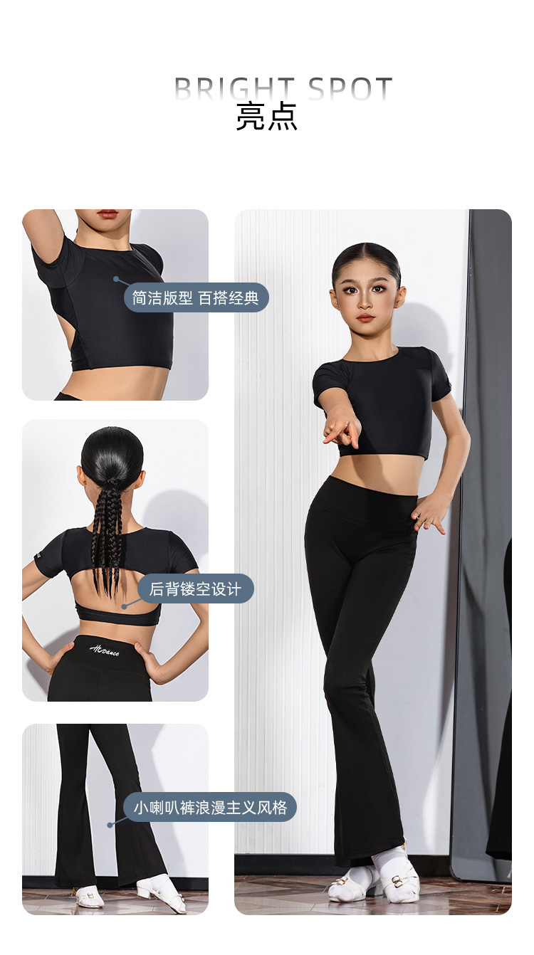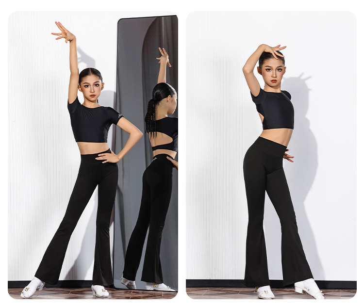皇朝拉丁拉丁舞长袖短上衣高腰长裤训练修身练功服H6445+H7369