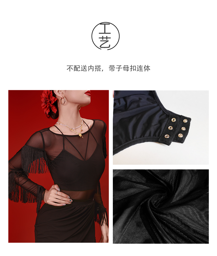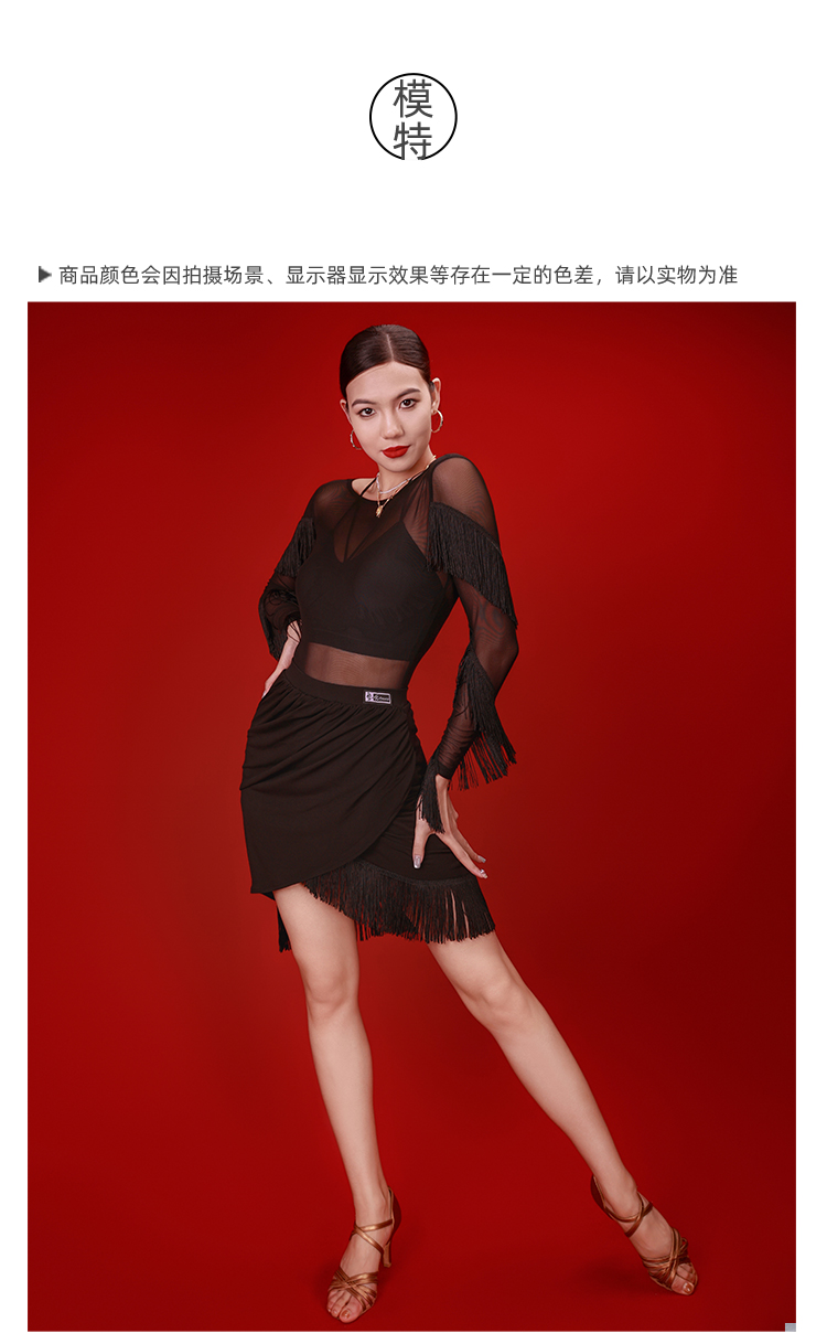 皇朝舞蹈拉丁舞练习服网纱流苏上衣包臀流苏舞裙分体A1063+A2042