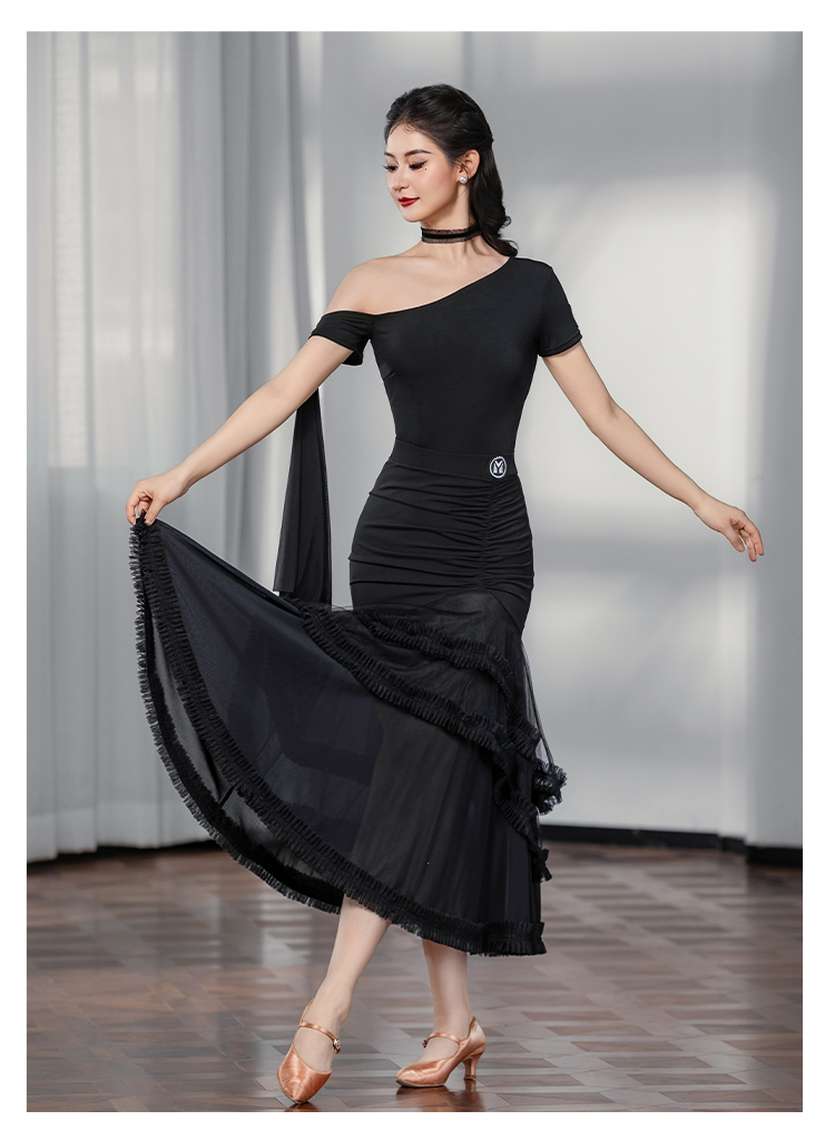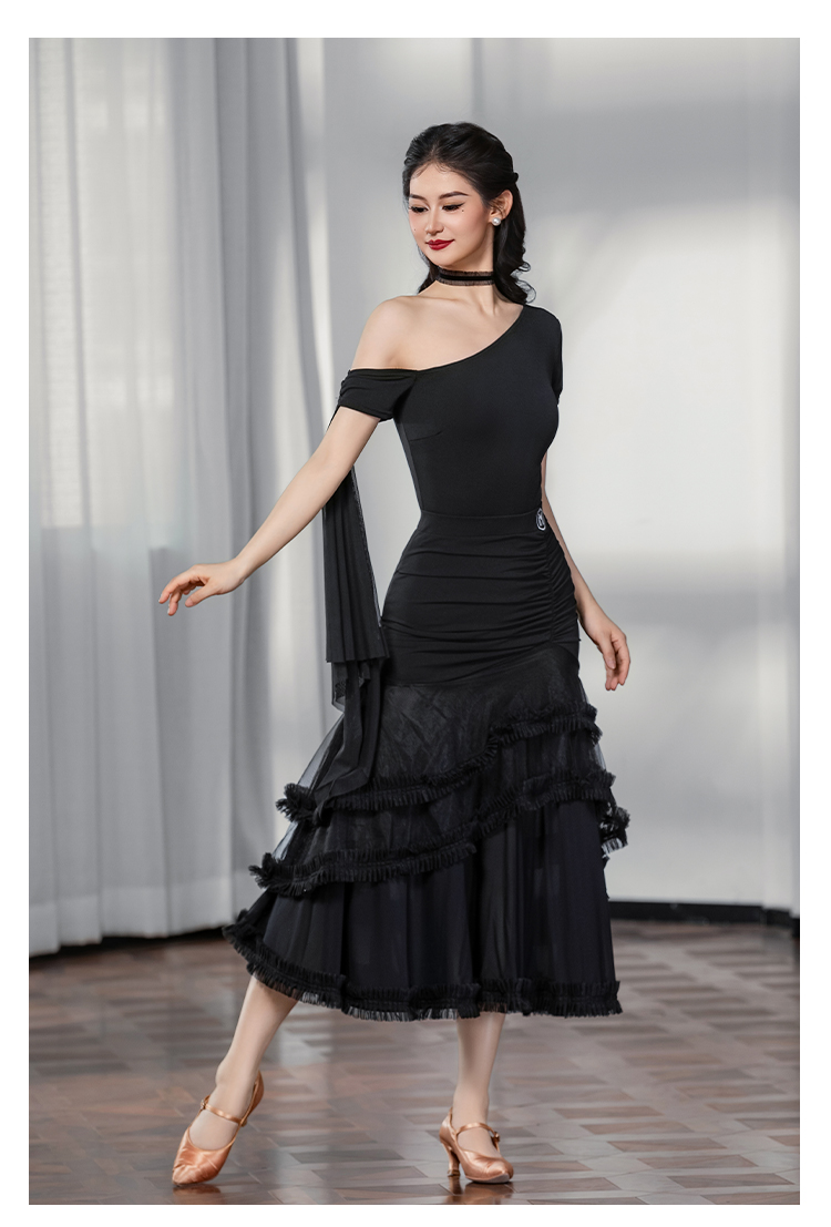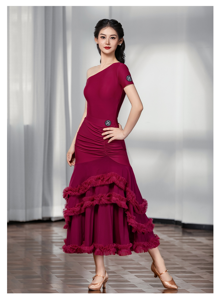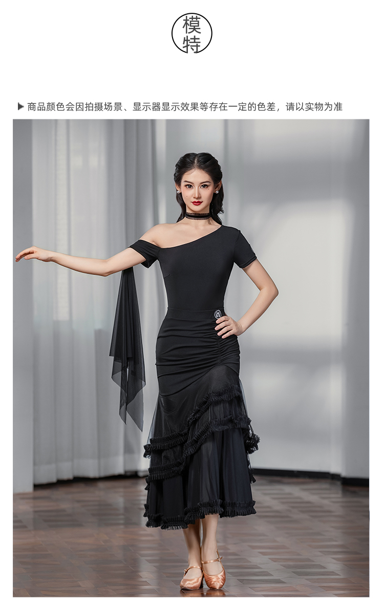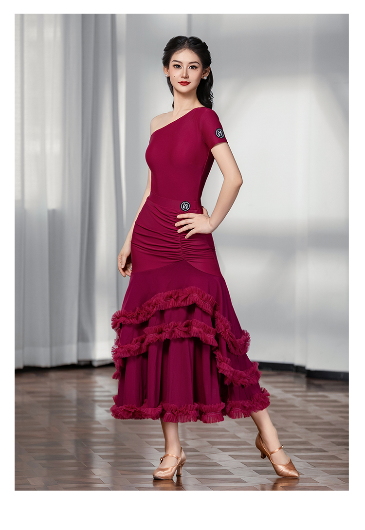 IAMYC摩登舞裙女成人斜肩仙女款上衣大摆花边半身裙B10137+B20098