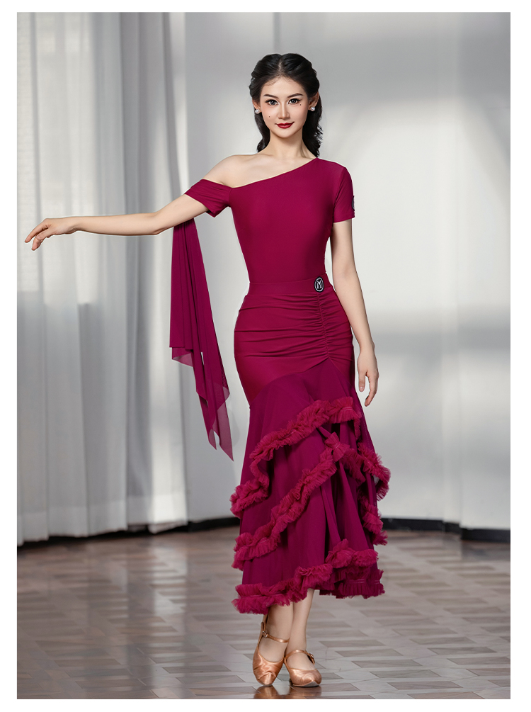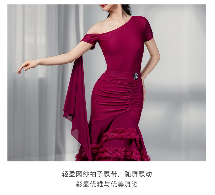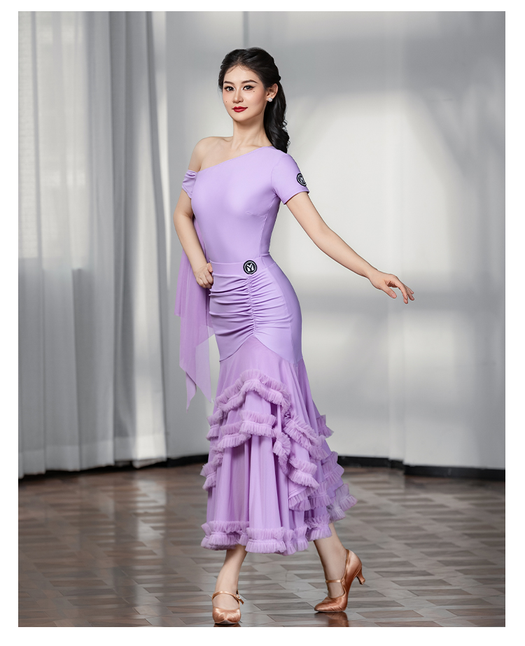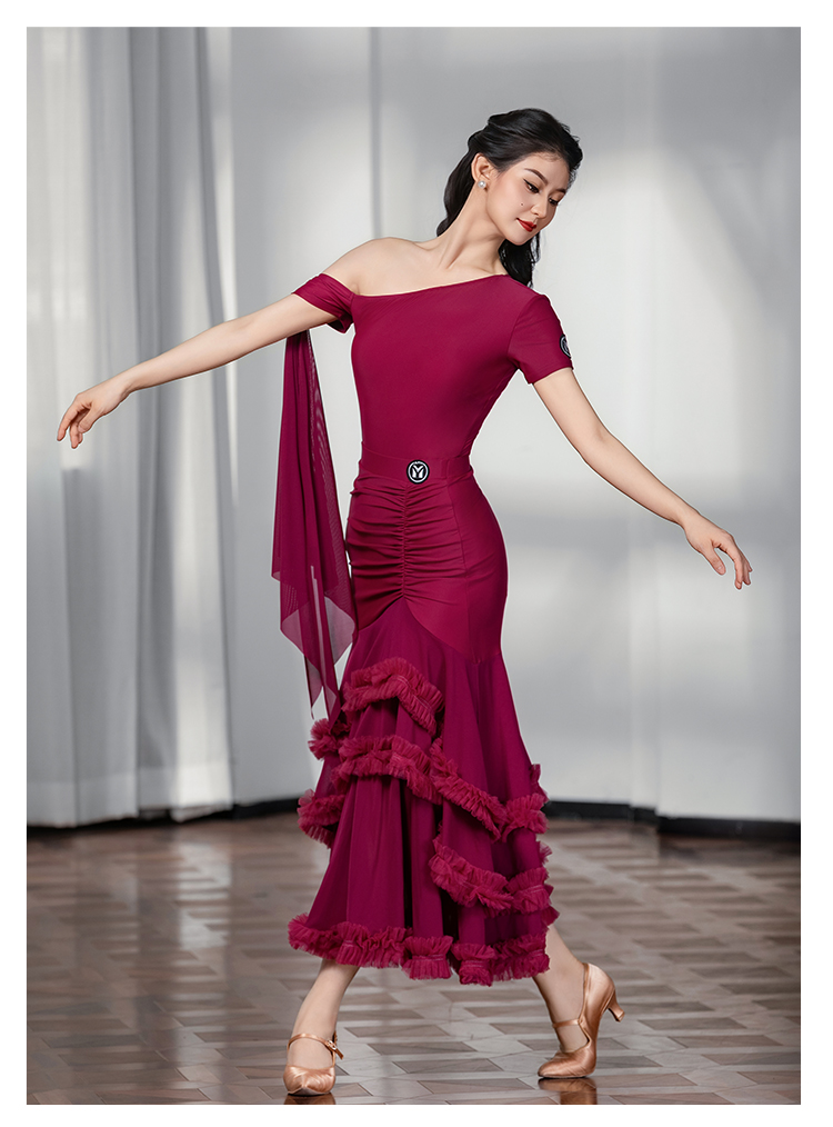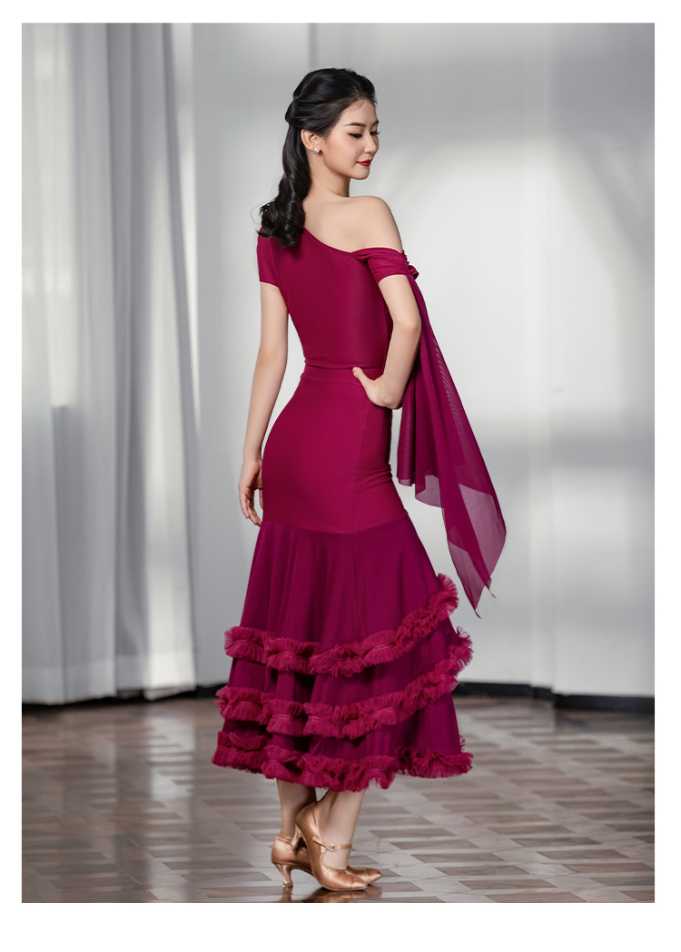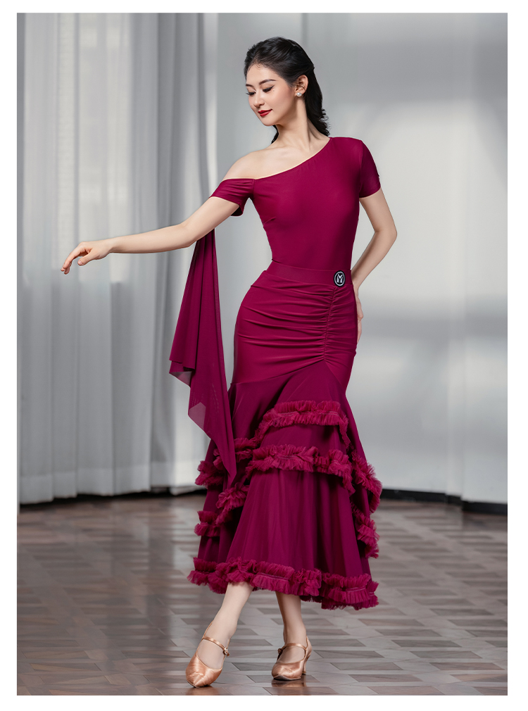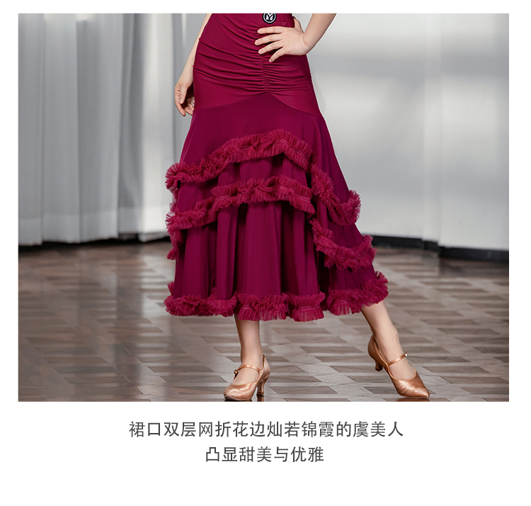 IAMYC摩登舞裙女成人斜肩仙女款上衣大摆花边半身裙B10137+B20098
