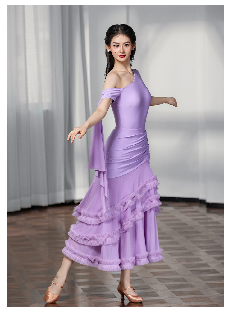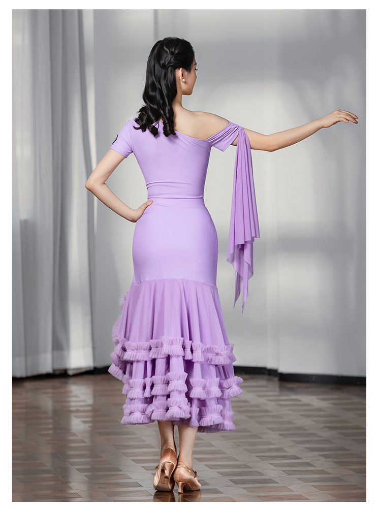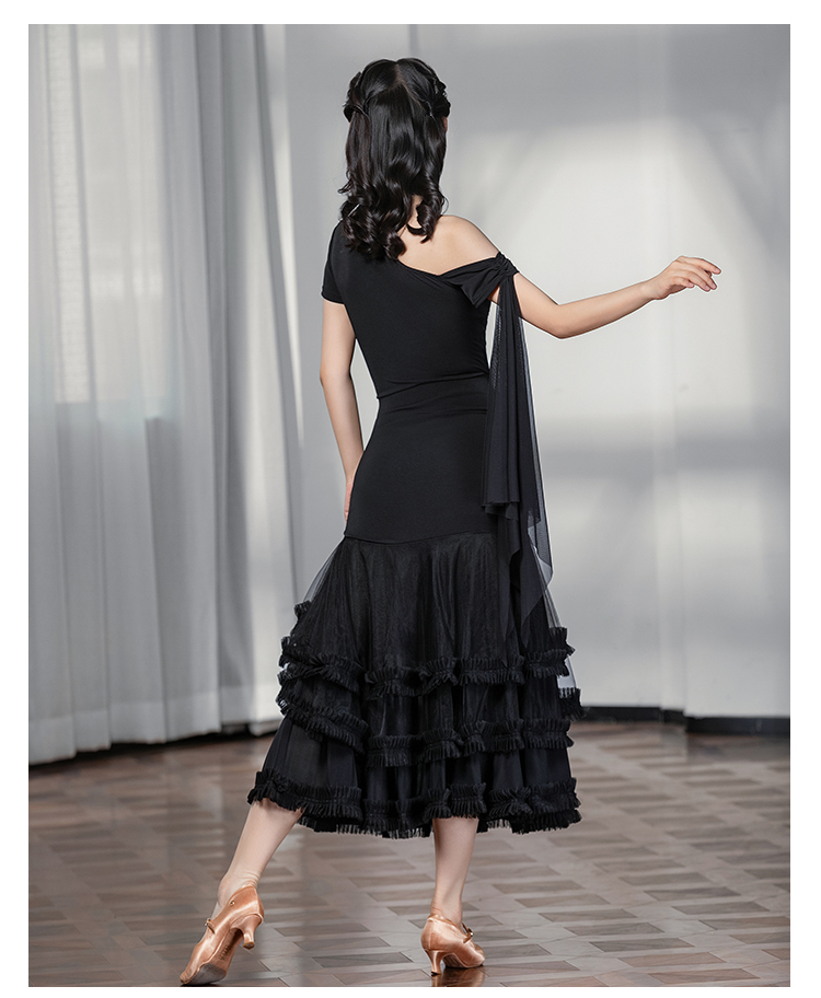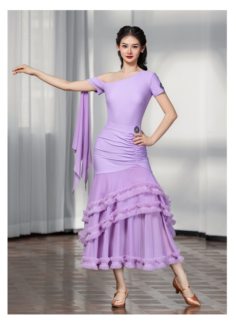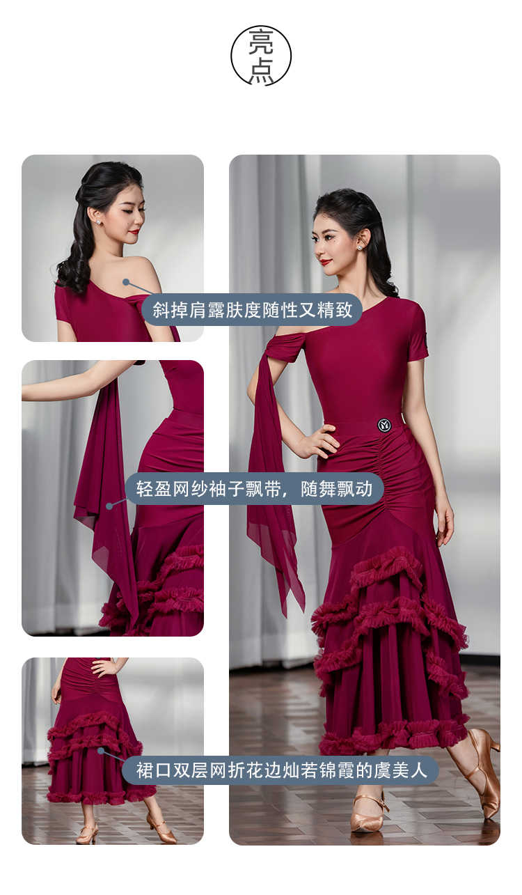 IAMYC摩登舞裙女成人斜肩仙女款上衣大摆花边半身裙B10137+B20098