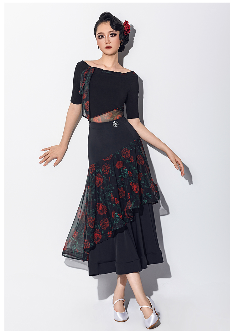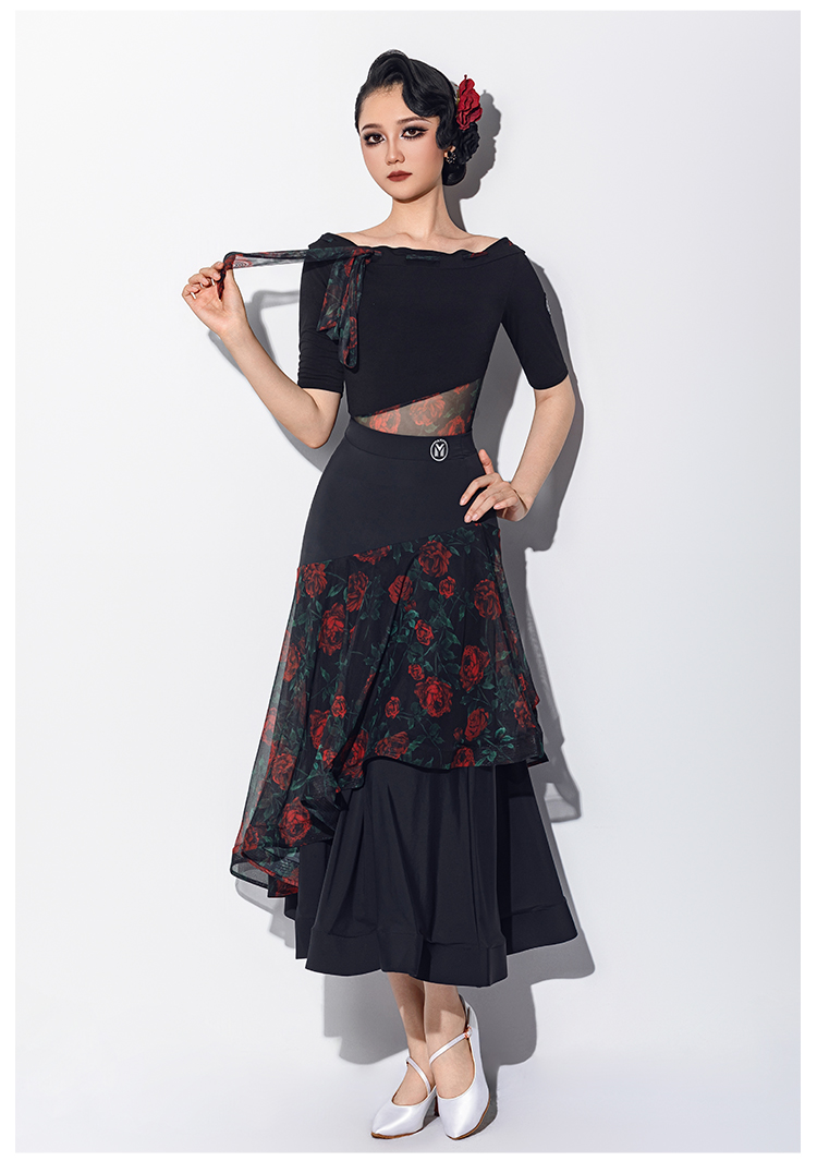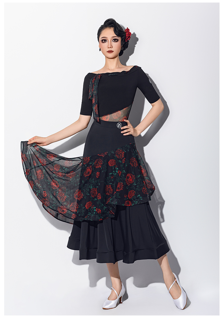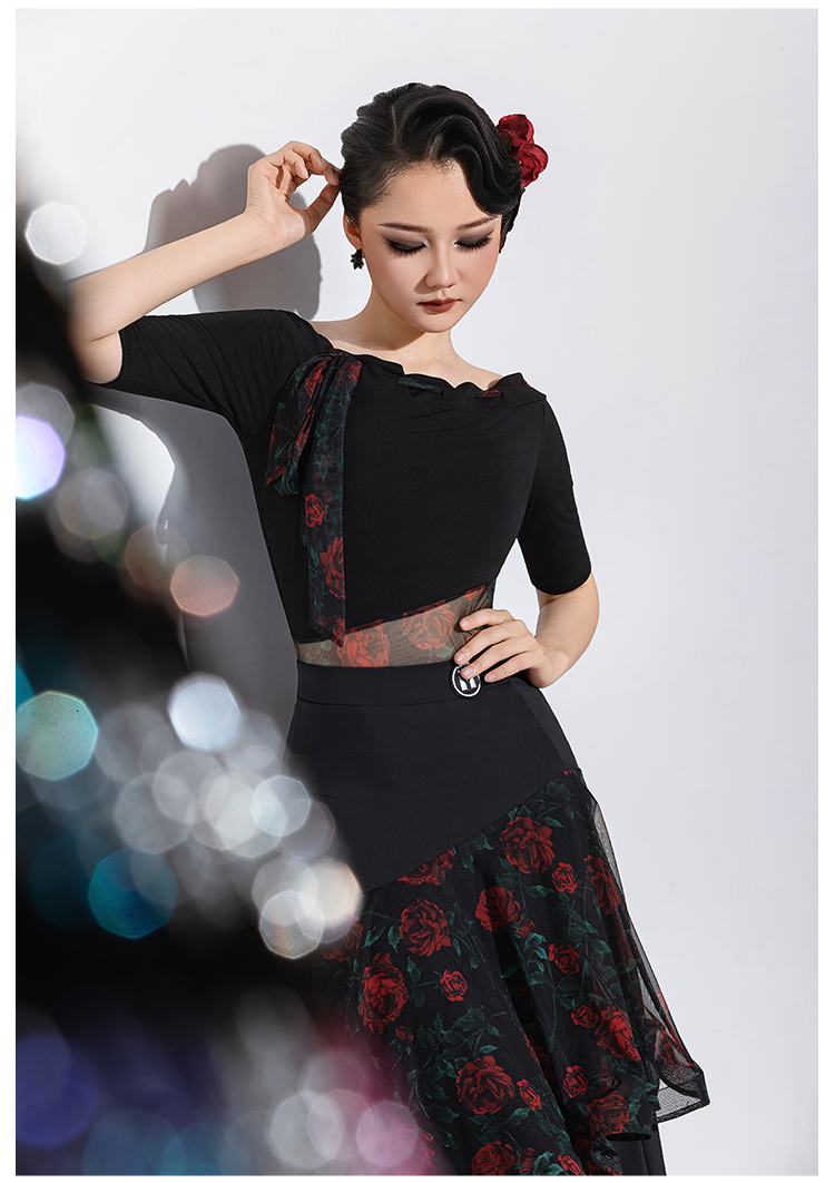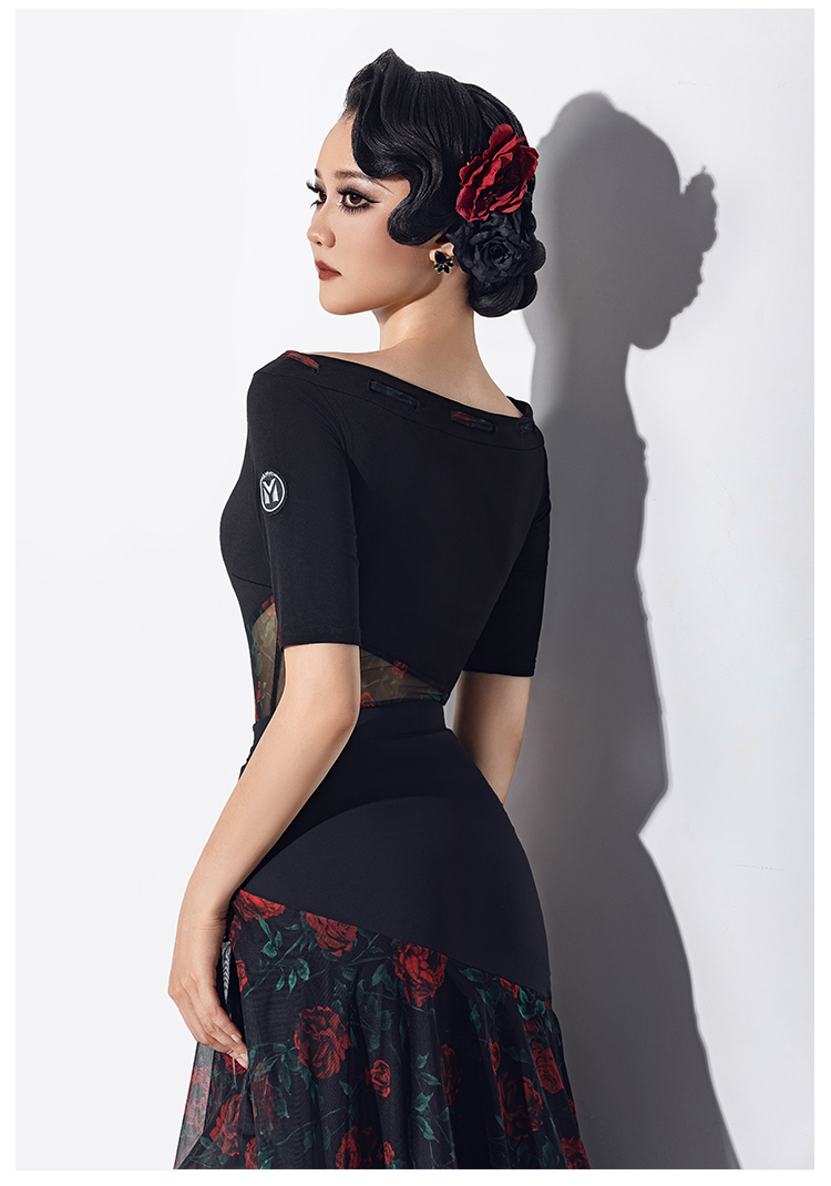 IAMYC摩登舞服女华尔兹舞蹈国标舞练功服连体上衣B10147